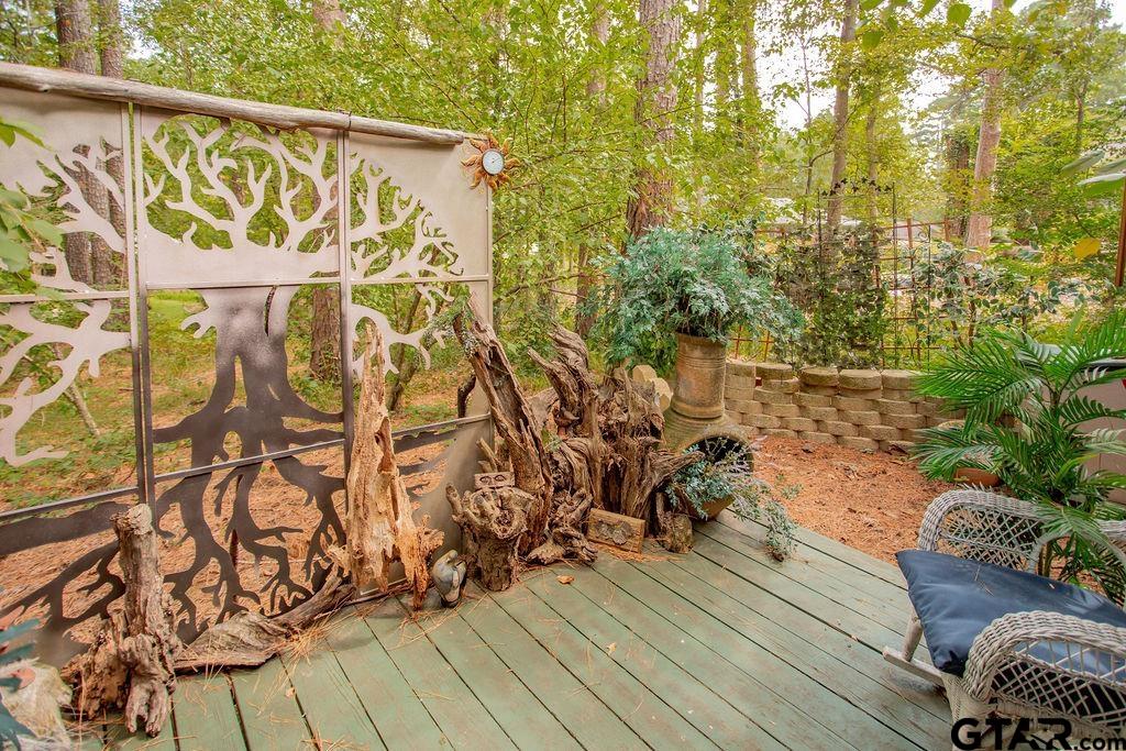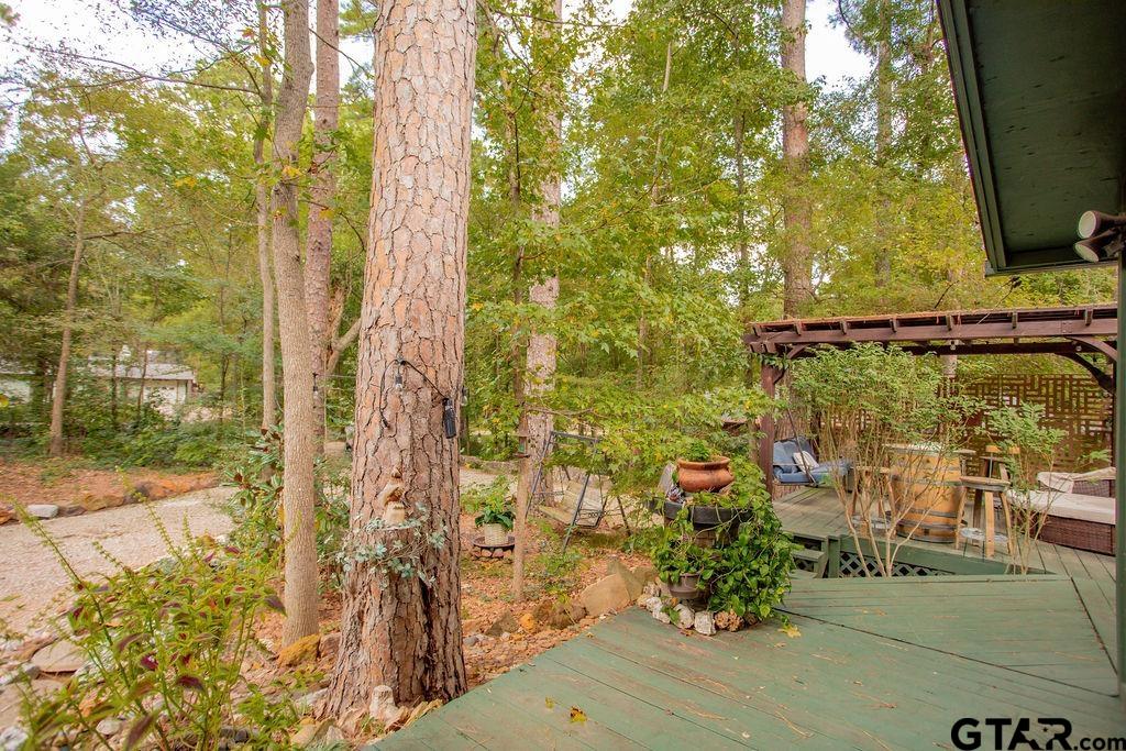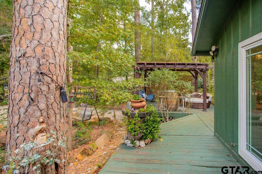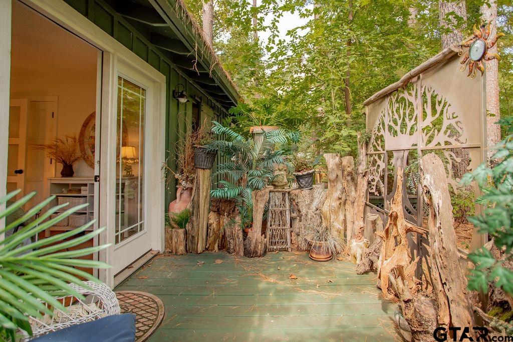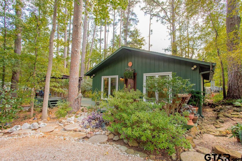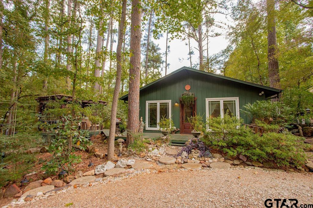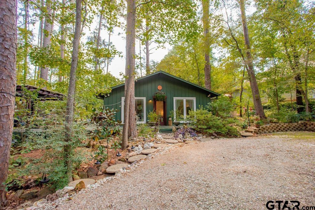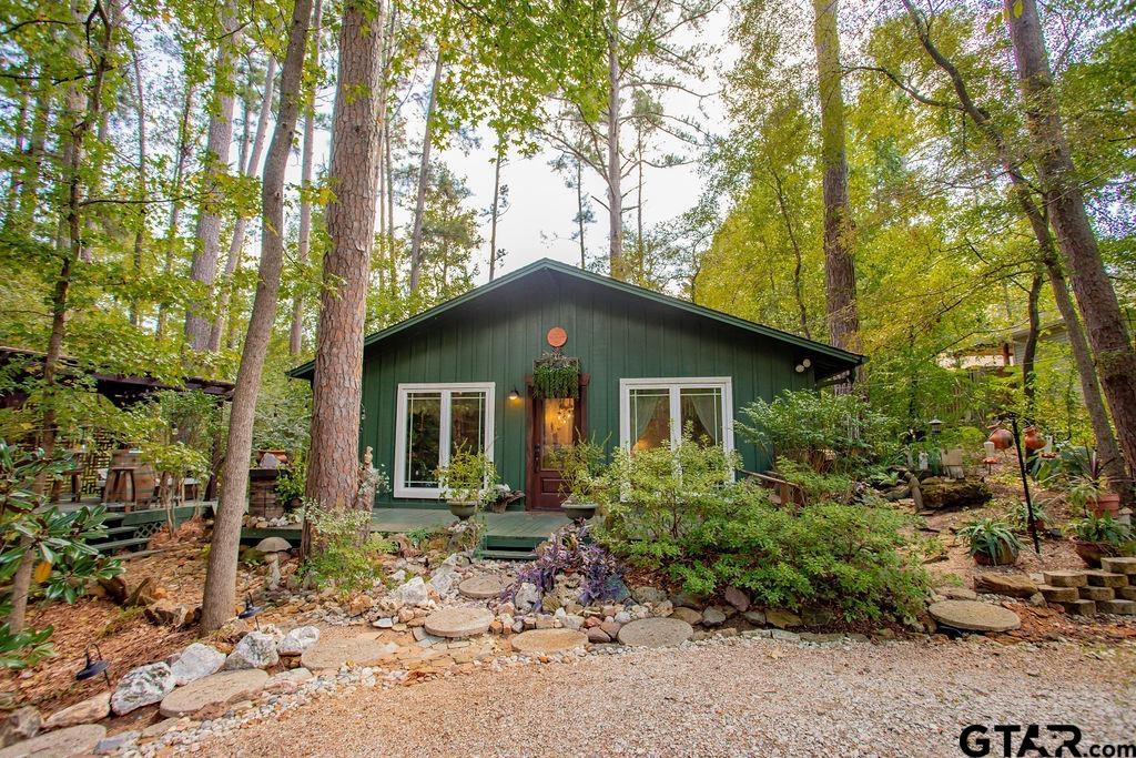 Adorable Hideaway Bungalow Retreat. Welcome to this charming 2-bedroom, 1-bath bungalow, perfectly tucked away near the back gate of Hideaway for easy access while still offering peace and privacy. Situated on a gorgeous lot surrounded by mature trees, this home feels like a hidden woodland retreat. Step inside to find vinyl wood plank flooring throughout, a stylish kitchen with modern tile work and updated appliances, and a cozy bath featuring custom vanity with black & white penny and honeycomb tile details. The primary bedroom opens directly onto a private deck, ideal for morning coffee or winding down at sunset. Multiple outdoor living decks extend your entertaining and relaxation space, making the most of the serene wooded setting. This quaint Hideaway hideout blends character and comfort with modern updates—offering a lifestyle that’s as inviting as it is convenient. Hideaway offers a resort-style living with 24/7 security, 3 lakes, 27-hole golf course, an Olympic-sized pool and multiple parks. Hideaway is in Lindale ISD. |