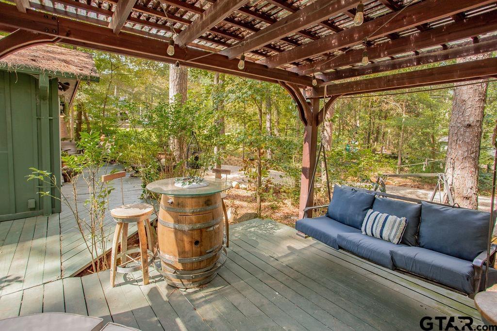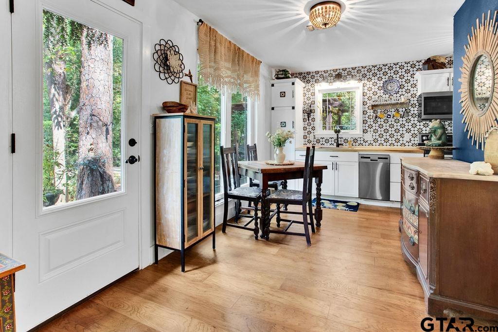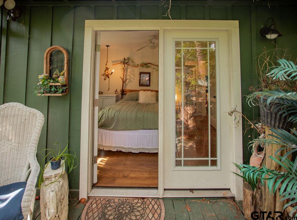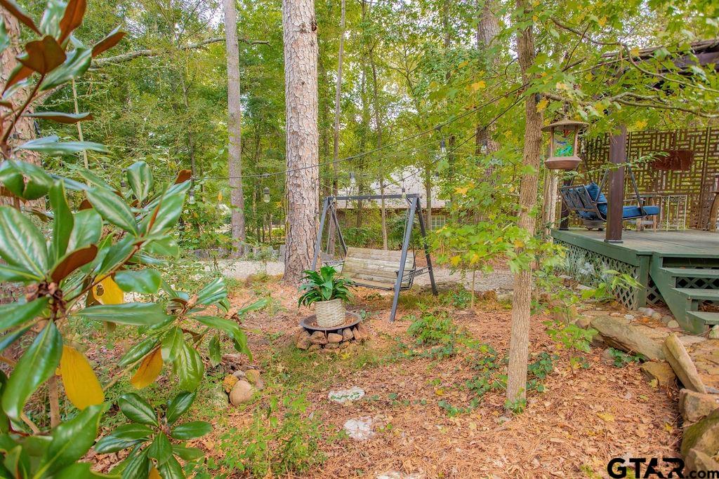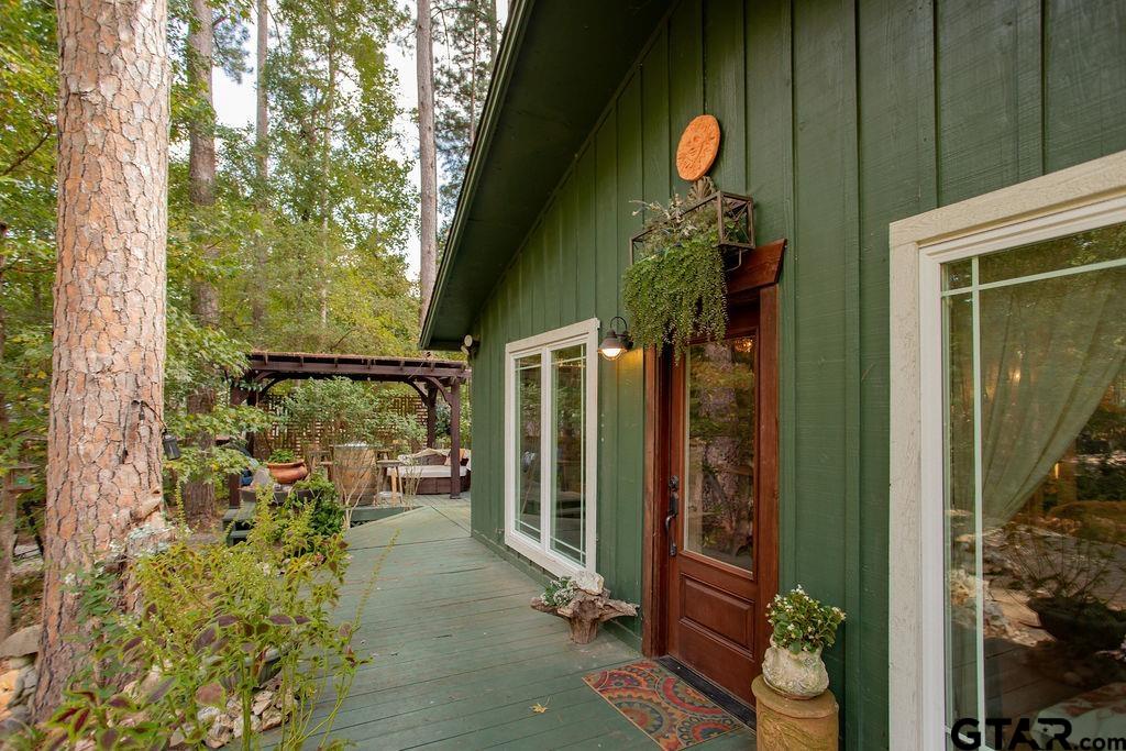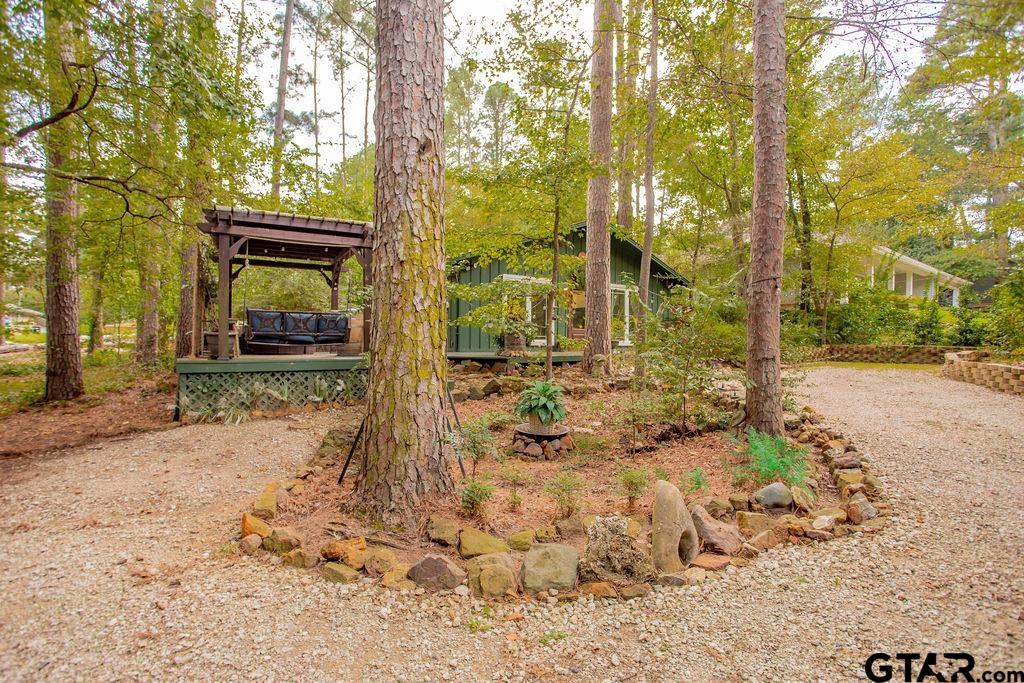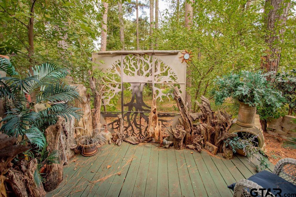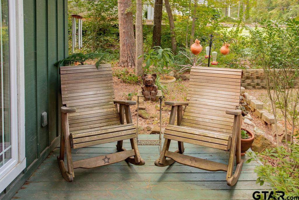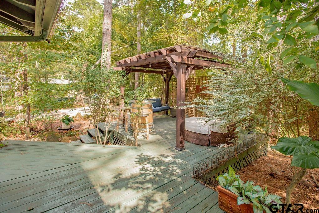 Adorable Hideaway Bungalow Retreat. Welcome to this charming 2-bedroom, 1-bath bungalow, perfectly tucked away near the back gate of Hideaway for easy access while still offering peace and privacy. Situated on a gorgeous lot surrounded by mature trees, this home feels like a hidden woodland retreat. Step inside to find vinyl wood plank flooring throughout, a stylish kitchen with modern tile work and updated appliances, and a cozy bath featuring custom vanity with black & white penny and honeycomb tile details. The primary bedroom opens directly onto a private deck, ideal for morning coffee or winding down at sunset. Multiple outdoor living decks extend your entertaining and relaxation space, making the most of the serene wooded setting. This quaint Hideaway hideout blends character and comfort with modern updates—offering a lifestyle that’s as inviting as it is convenient. Hideaway offers a resort-style living with 24/7 security, 3 lakes, 27-hole golf course, an Olympic-sized pool and multiple parks. Hideaway is in Lindale ISD. |