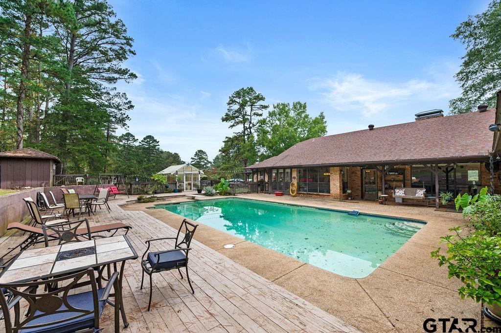 | Welcome to your personal slice of country life. Situated on 50+/- acres, only a little over 3 miles from town, this home place is tucked off back away from the county road, offering a balanced mix of open pastures, mature woods, and a live spring-fed creek -- perfect for cattle, equine pursuits, hay production, gardening, or simply enjoying the peace of rural life. The property features a comfortable brick house with a rustic front porch overlooking the front horse pasture. Inside you'll find 3,500 +/- square feet of functionally designed space. The 4-bedroom, 3-bathroom layout includes two flexible spaces -- one is the 5" original bedroom converted into an office next to the kitchen, another is a converted two car garage that functions now as another office with build-ins, and a convenient laundry area. The primary suite is generously sized, with space for a sitting area, and includes an ensuite bathroom with walk-in shower, dual vanities, and his/hers closets. You'll also enjoy a formal dining room and an adjacent sun room, both connected to the kitchen that has a country-feel butcher block island. This is the place to be for family gatherings. A floor-to-ceiling Old-Chicago brick fireplace anchors the vaulted-ceiling living area, a warm place for fellowship with family and friends, or simply unwinding after a satisfying day on the farm. A large 20x40 in-ground swimming pool spans the length of the living, dining and sunroom areas, making this a perfect spot for outdoor fun. A pool shed with a working toilet adds convenience, and an adjacent greenhouse is there for all your green thumb enjoyment. Adjacent to the house is a solidly built 5-stall horse barn with tack room, along with a second multi-use barn boasting a shop on one side and a fully insulated office or storage area on the other. Both barns have electricity, the horse barn has water. Any direction you look, the views will never get old. Whether you want to farm, raise cattle & horses, live the ho | |
