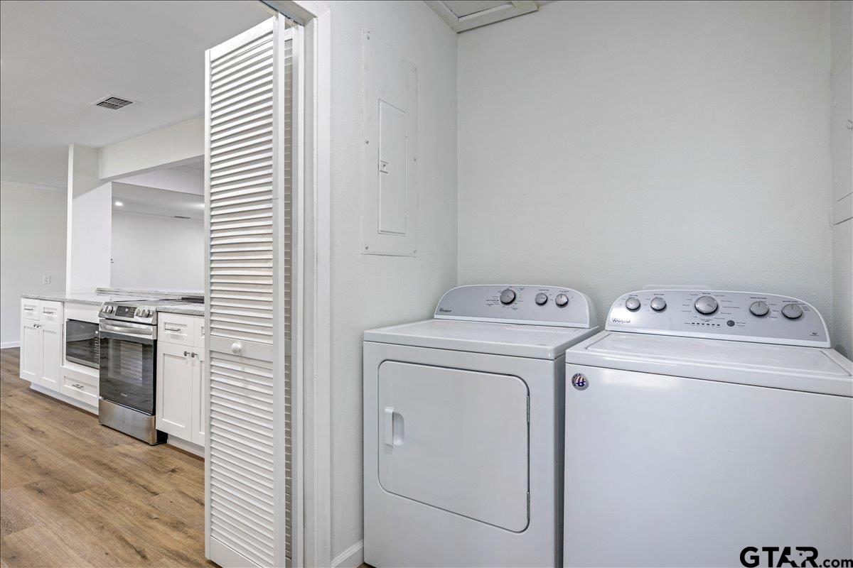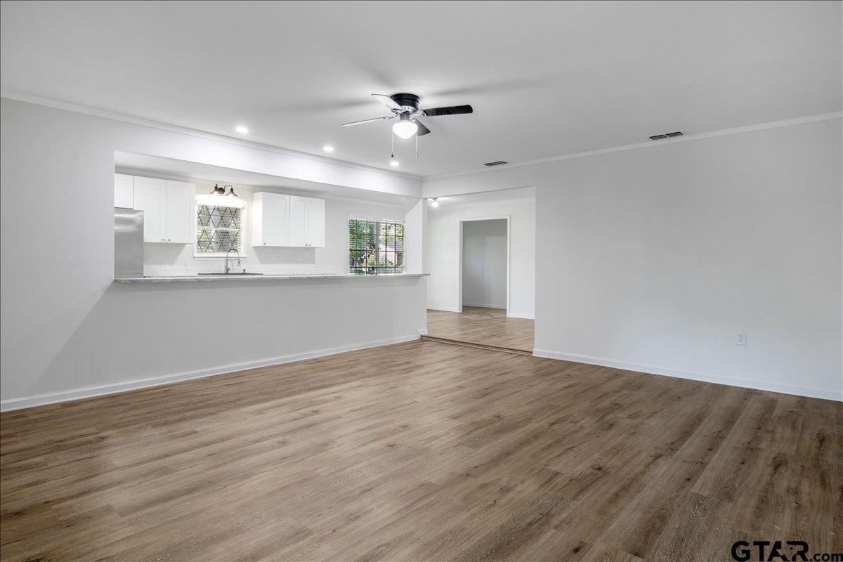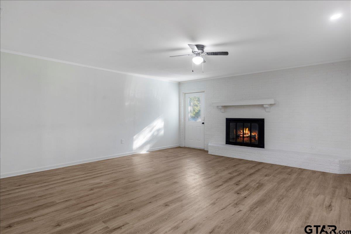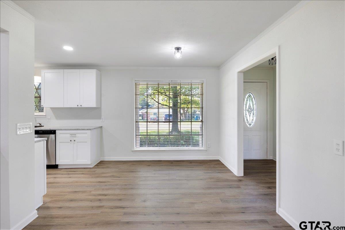 | Beautifully remodeled home in the heart of Lindale, TX. Situated on a corner lot with mature trees, shaded yard and deck to enjoy the view. Inside you'll be pleased with everything brand new! Luxury vinyl plank, carpet, cabinets, countertops, paint, light fixtures, fans, stainless steel stove, dishwasher, microwave and refrigerator, and more! There are 2 living areas, wood burning fireplace, kitchenette and countertop seating. 3 bedrooms and 2 baths. Carport and storage building. New roof in 2024. Move in ready! | |