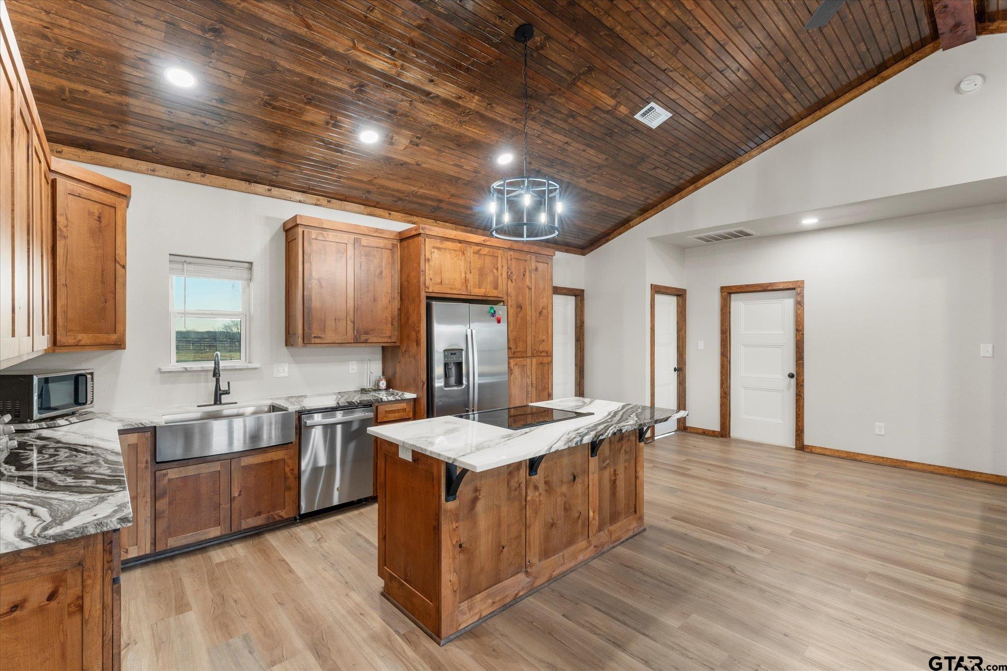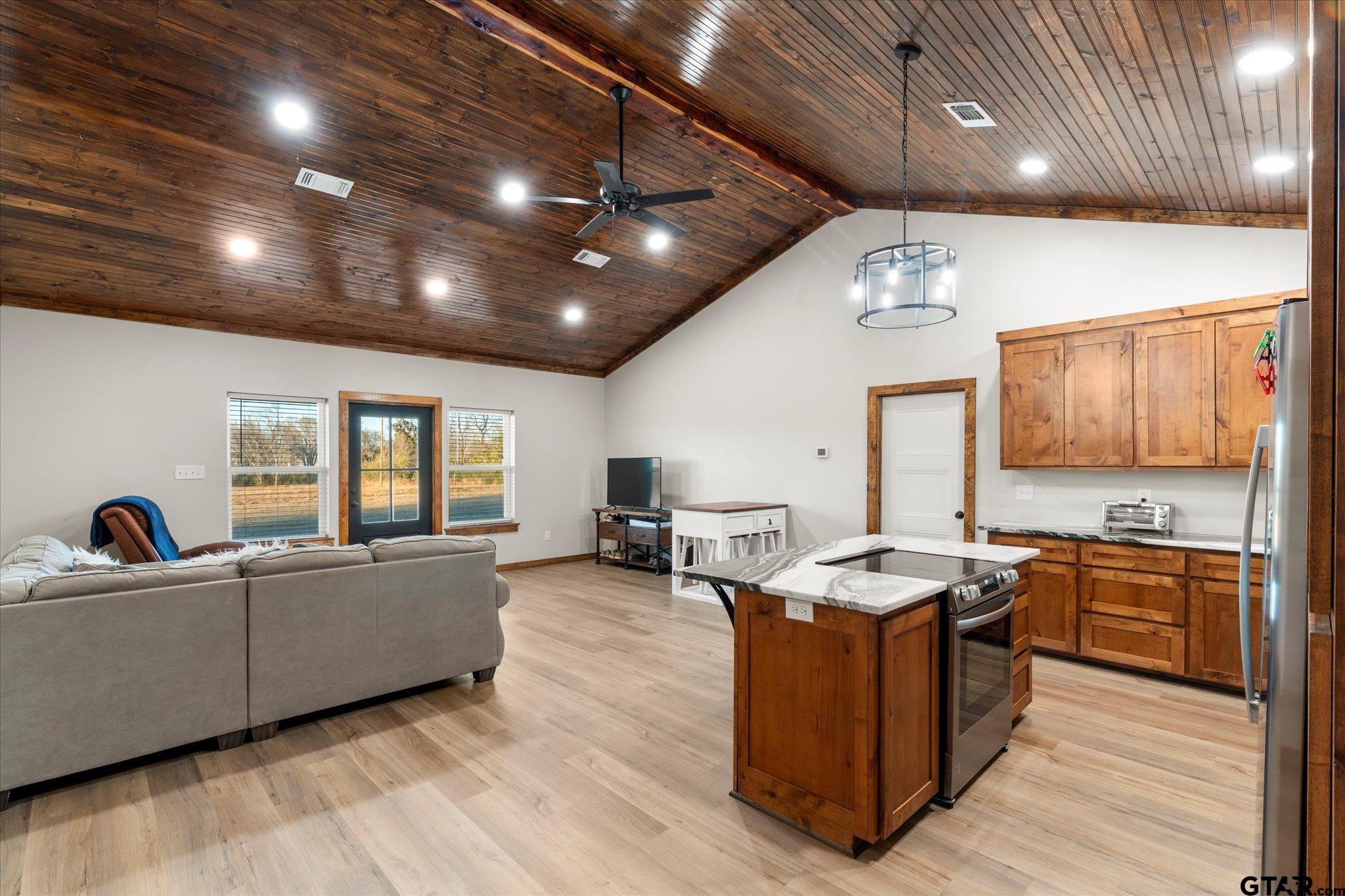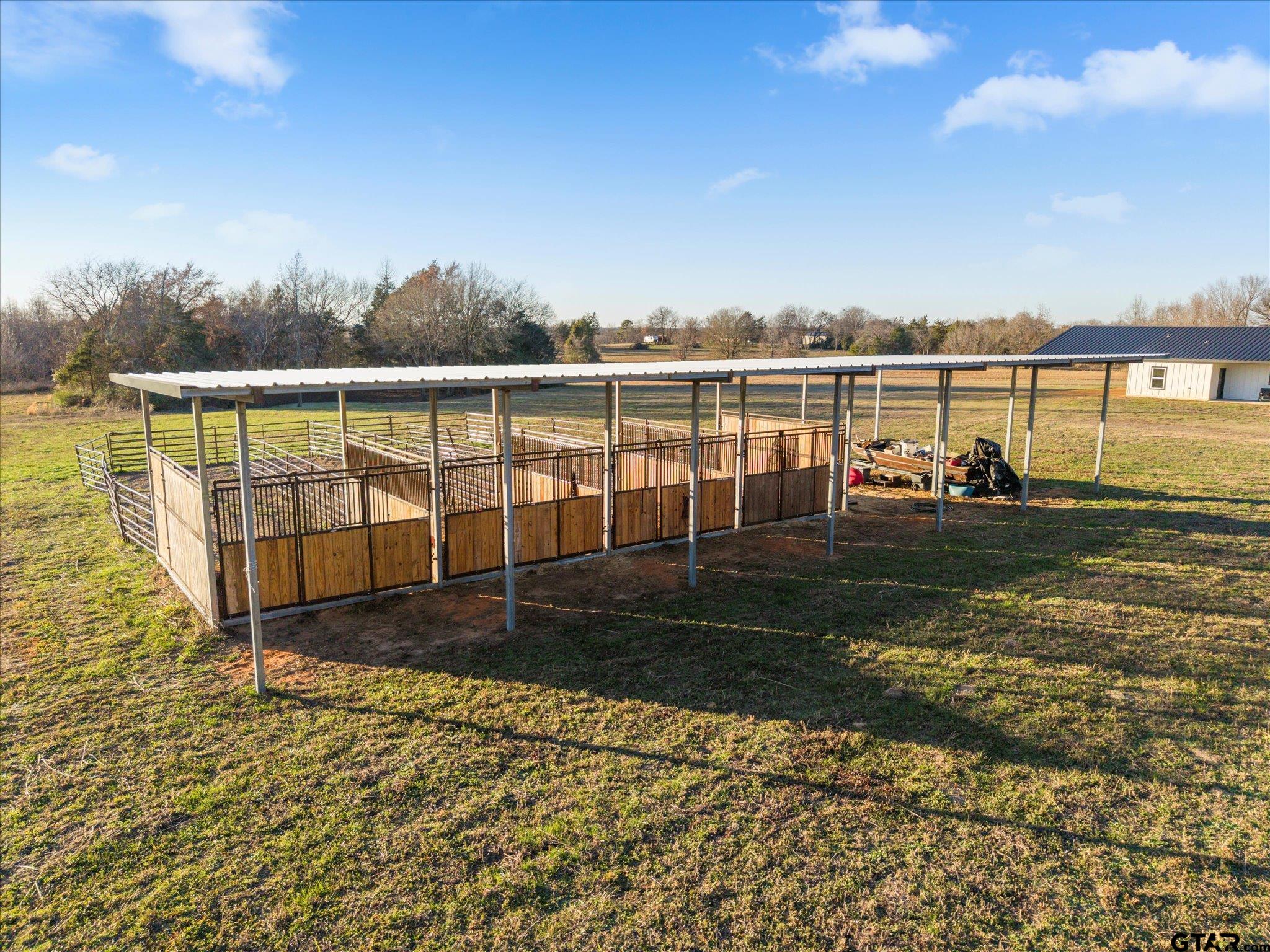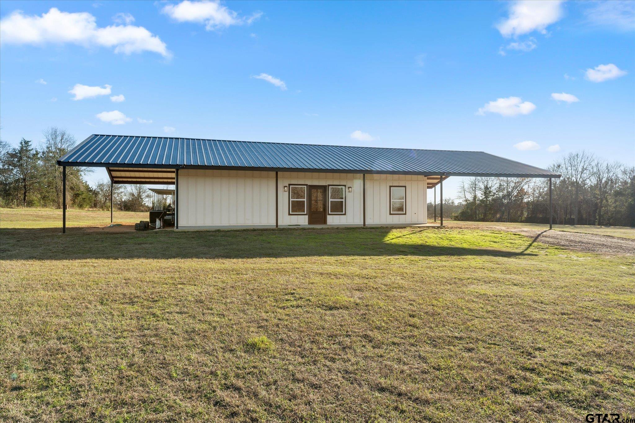 | Welcome to this stunning custom-built barndo farmhouse on nearly 13 acres that perfectly blends country charm with modern convenience. Perched atop a scenic hilltop, this nearly new residence offers breathtaking views and the peaceful lifestyle you've been dreaming about. Step inside to discover soaring vaulted ceilings that create an airy, open atmosphere throughout the thoughtfully designed interior. With three spacious bedrooms and two full bathrooms spread across over 1,400 square feet, this home provides comfortable living space for the whole family. Horse lovers & outdoor enthusiasts will fall in love with the impressive pole barn featuring four stables, dedicated equipment storage, and full electrical and water hookups. Whether you're raising horses, storing your toys, this versatile outbuilding has you covered. The property showcases excellent fencing, a small pond, and both front and back covered porches perfect for morning coffee or evening relaxation. A generous attached covered carport plus additional covered storage space ensures your vehicles and belongings stay protected from the elements. Conveniently located within the Chapel Hill School District and just minutes from town, you'll enjoy the best of both worlds: rural tranquility with easy access to town. Schedule your private showing today and discover your slice of Texas paradise! | |