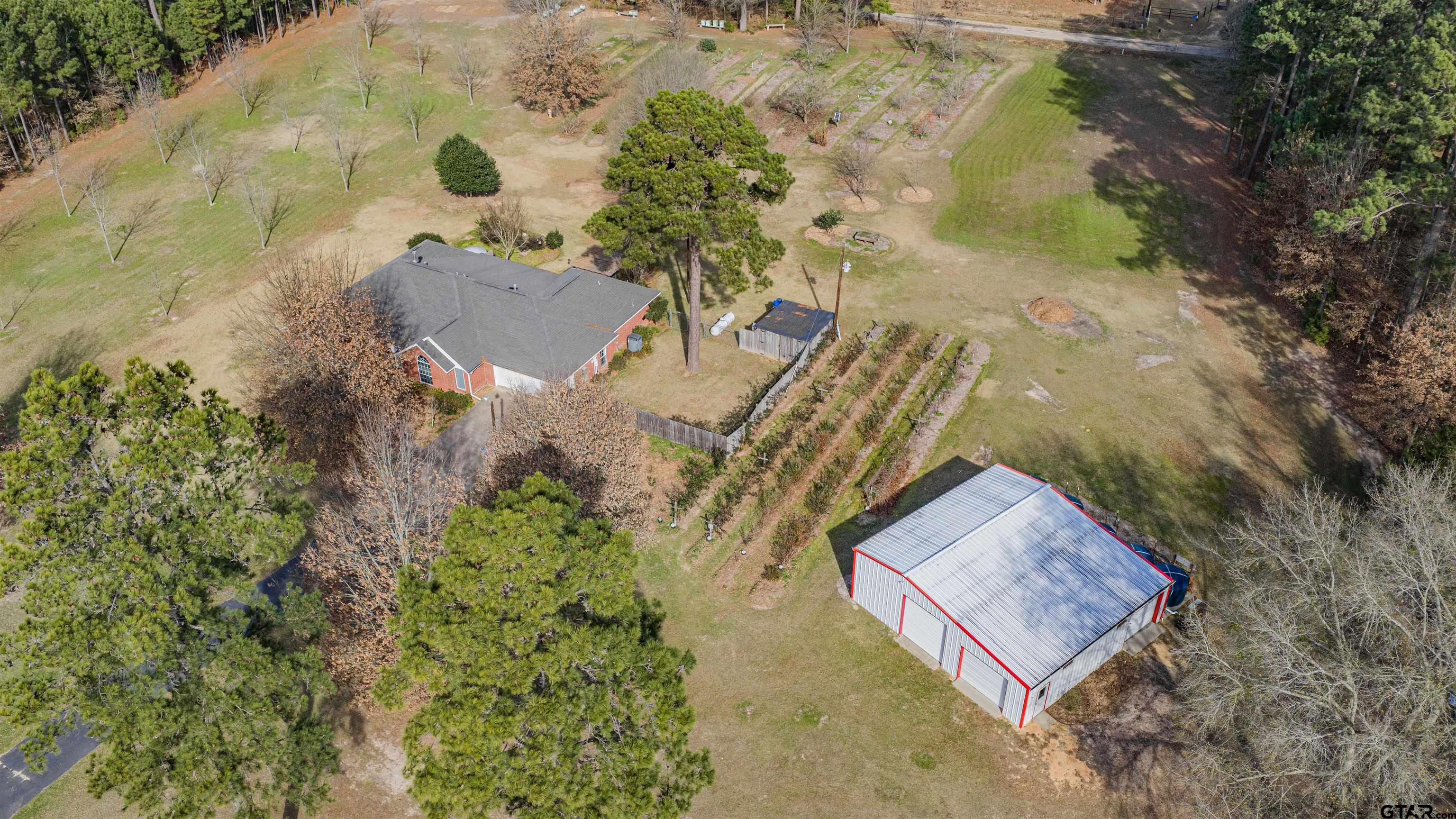 | Set outside city limits on 6.141 acres in Chapel Hill ISD in Mt. Pleasant, TX. This well-maintained property offers privacy, flexibility, and exceptional setup for on/off-grid living. With road frontage on three sides, mature wooded boundaries, and both front and rear access options, the layout provides convenience and seclusion. The 4-bedroom, 2-bath home features an open kitchen, living, and dining area ideal for everyday living and entertaining. A bonus room/sunroom offers flexible use as a secondary living space, office, or hobby room. The split primary suite includes an en suite bath with separate shower and soaking tub, double vanity, and a large walk-in closet. The kitchen opens to both the dining and formal dining areas and offers abundant storage, and a walk-in pantry. Additional features include a propane fireplace, tankless propane water heater, and battery backup system wired and in place, recharged by portable solar panels. Outside, the property can be as simple or as self-sustaining as desired. Improvements include a 40x40 (1,600 sq ft) shop with power and water, a two-sided design, garden shed with power and water, and a small fenced side yard off the garage. A rainwater catchment system includes five tanks with pumps for property irrigation, plus an additional tank serving the house. The property is fully landscaped with low-maintenance, heat-tolerant plantings and features an in-ground irrigation system. Mature nut and fruit trees, blueberries, blackberries, grape and muscadine vines, a rose garden, wildflower meadow, and clover meadow support pollinators and enhance the natural setting. Mature trees line three sides of the property for added privacy. | |