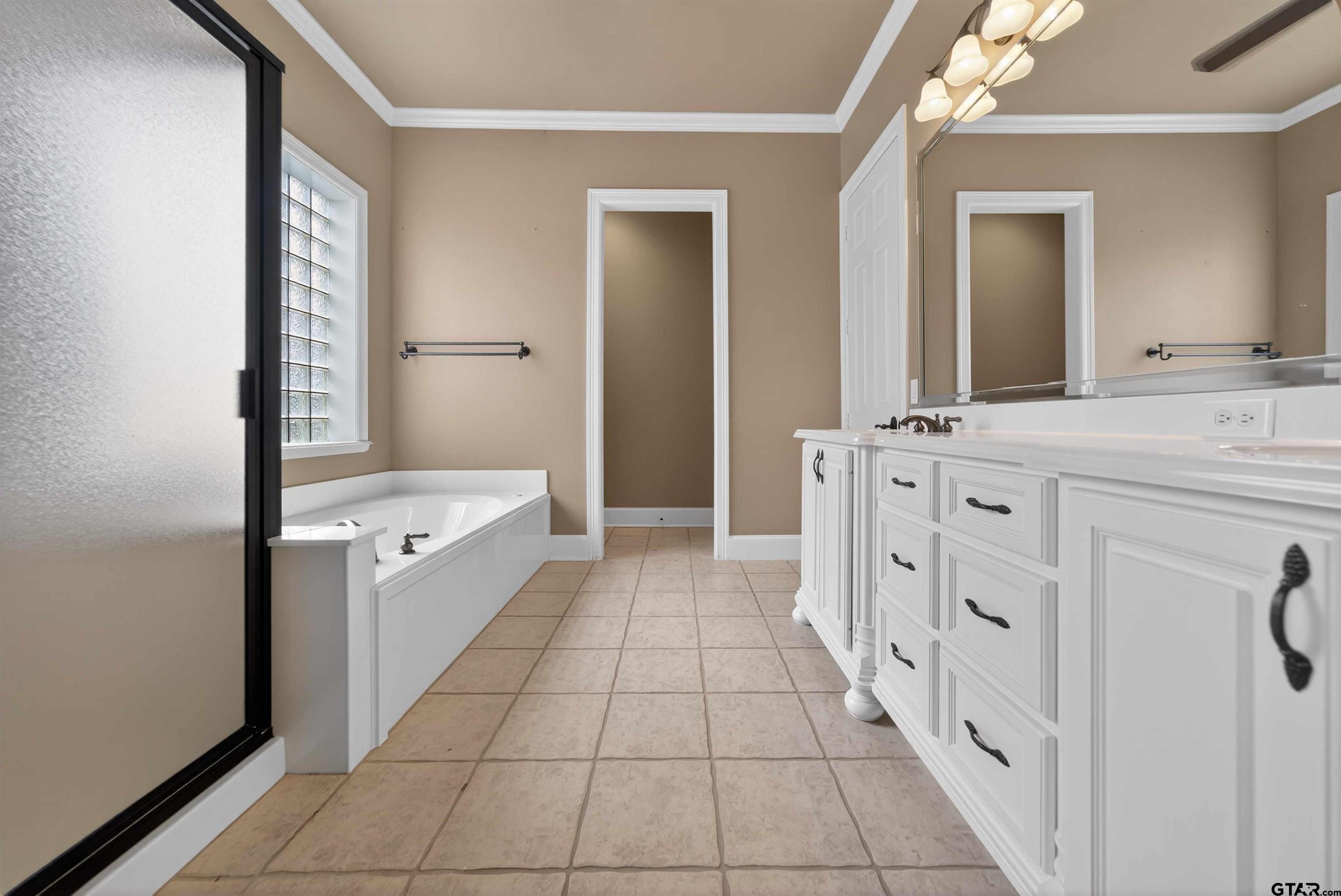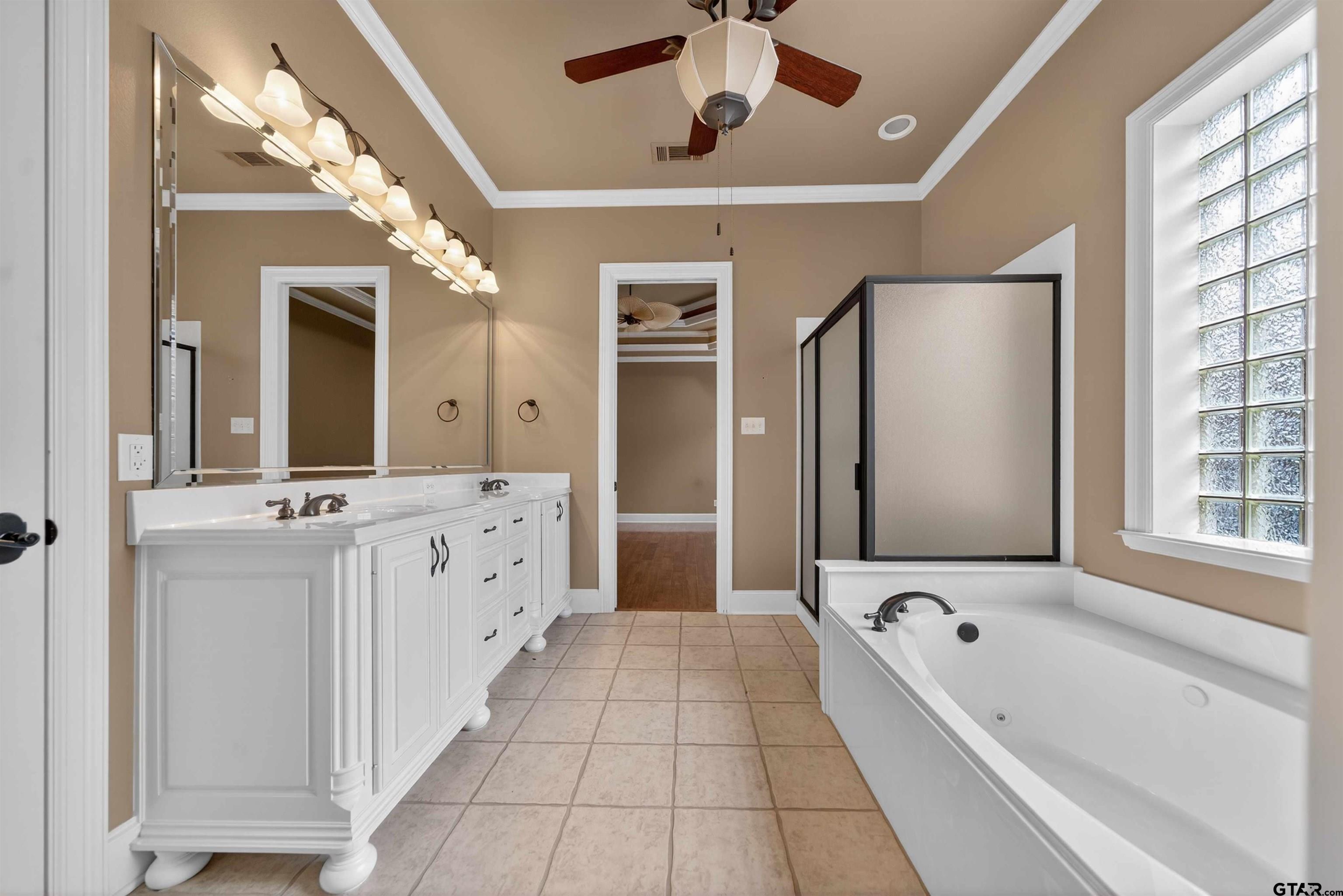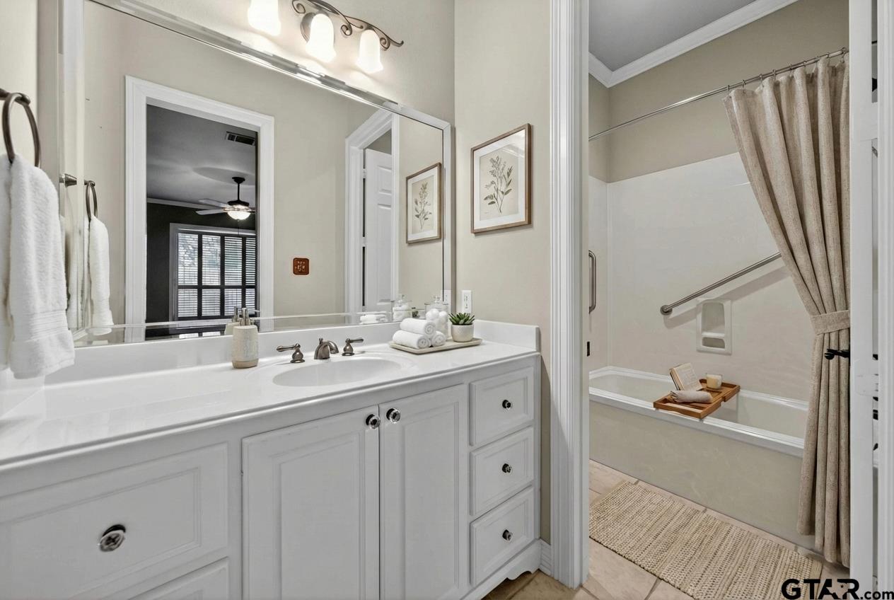 | Stunning custom home in a sought after gated community of South Tyler. Soaring ceilings welcome you into the entryway. Great room with a wall of windows and formal dining area lead to the well appointed kitchen, breakfast room and den with built ins and brick fireplace. Plantation blinds, two gas log fireplaces, wood floors, granite counter tops, crown and base molding, stainless steel appliances and custom designs throughout plus so much more. Warming drawer, electric double ovens, gas cooktop, and pantry. The kitchen is located in the heart of the home. Primary bedroom is separated from the additional bedrooms and boasts a separate shower, jetted tub, double vanities and private water closet and oversized walk in closet with built ins. The secondary bedrooms share a jack and jill bathroom. One of the secondary bedrooms is the size of a second primary and has access to the enclosed porch. Half bathroom located by the utility room. Enclosed back porch with a stone, gas log fireplace with views of the garden retreat. Walkways venture through the landscaped back yard with views of the fountain. Garage holds two large vehicles. Storage rooms, work bench and back yard access. This is a MUST see, so come by today! | |