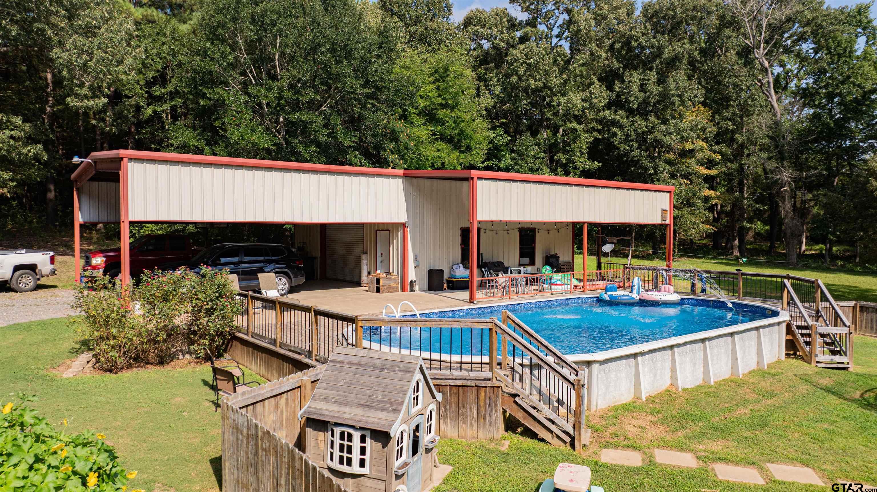 | Tucked away on 2.7 private acres, this 3-bedroom, 2.5-bath home offers 2,545 square feet of comfortable living space. The spacious living area features a cozy wood-burning fireplace, an open concept den and dining area, office, and a bonus room.Recent updates include a brand-new HVAC system, giving you comfort and efficiency you can count on. Outside, you'll find a 30x30 metal shop with loft storage, covered parking, and an extended patio space ideal for entertaining. Enjoy summer days in the pool or lounging on the deck and take in the peace of your private surroundings. Stay prepared with the on-site storm shelter for extra peace of mind during storm season. Adding even more charm, the property includes a "cabin" guest house with a kitchen, bedroom, bathroom, and living area- the perfect spot for visitors. This property offers the best of both worlds:seclusion and space, with all the comforts you need. Contact your trusted agent today to schedule a showing! | |