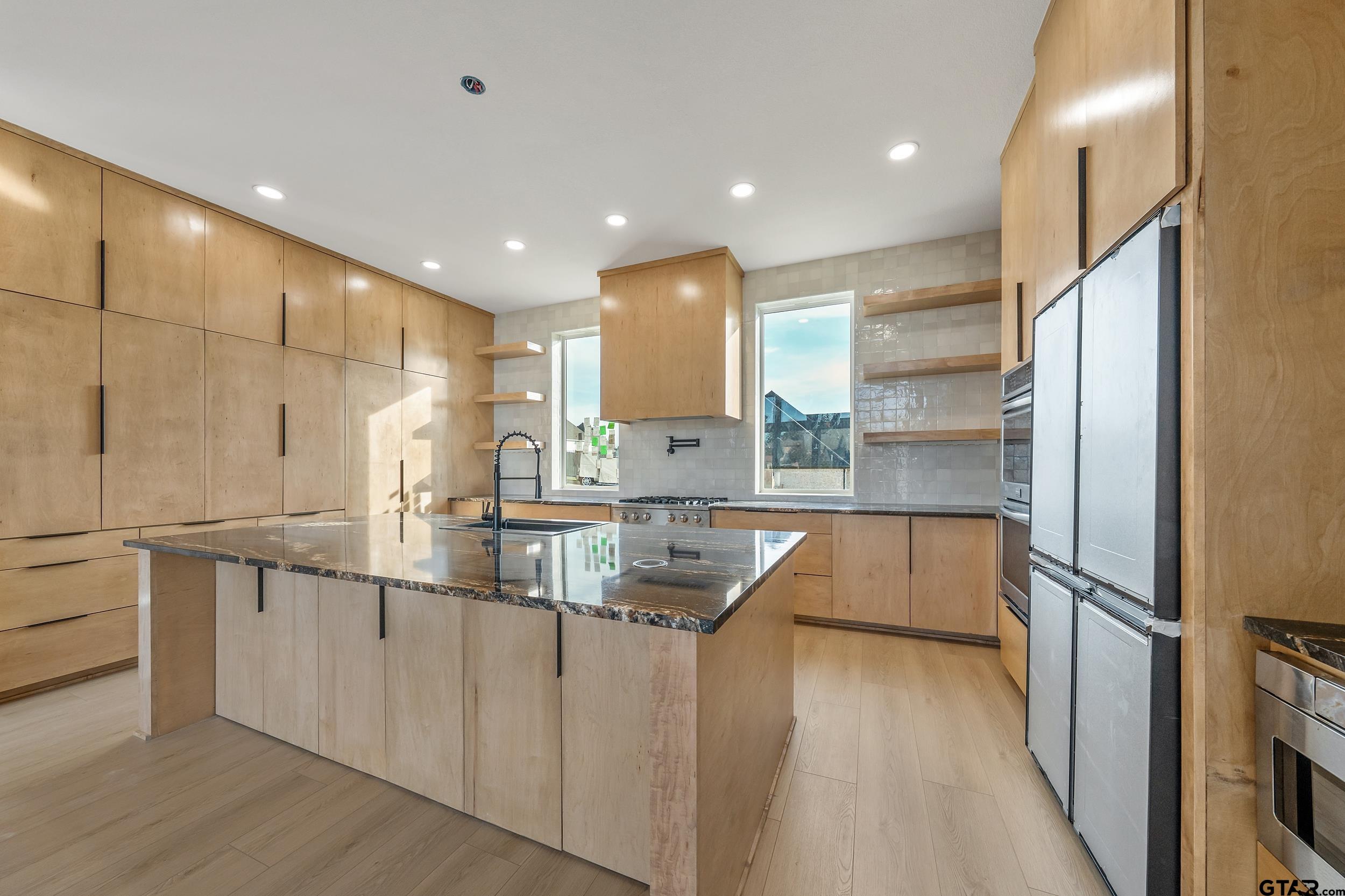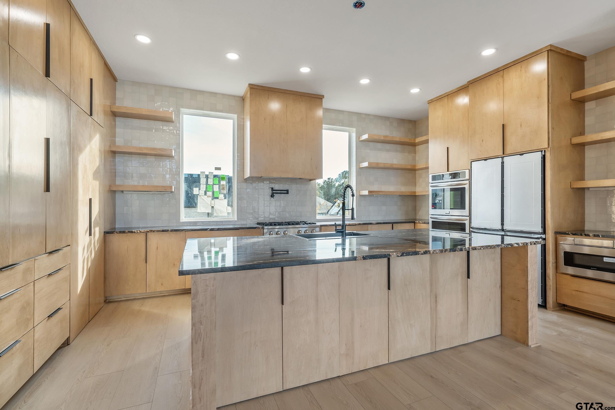 | Welcome to your dream home in South Tyler's Hadley Court at Oak Hollow! This exquisite 2025 new construction home located on a cul-de-sac is designed to impress with high-end finishes, functional spaces and thoughtful details throughout. Step through the stunning double glass and iron front doors to this spacious 4-bedrooms, 3-full bathrooms, bonus room and a massive chef's kitchen with premium finishes. The open concept family and kitchen area boast beautiful wood beams and floor- to- ceiling windows that allows for tons of natural light. The gourmet kitchen is equipped with a paneled refrigerator, large island with quartz countertops, gas cooktop, double ovens, pot filler, as well as a hidden pantry. The private primary suite is located on a separate wing, with spa-inspired ensuite bath, expansive walk-in closet, free standing tub and a rainfall shower. The primary bedroom closet is also connected to the spacious laundry room, adding an extra convenience. The additional bedrooms and a flexible bonus room provide plenty of space for a growing family, remote work or weekend guests. Flooring throughout this home creates a seamless design. Outside is a spacious covered patio, perfect for grilling and relaxing. Privacy fence will be installed. Located close to schools, trails, shopping and dining. This home has it all space, style and functionality! Schedule your appointment today! | |