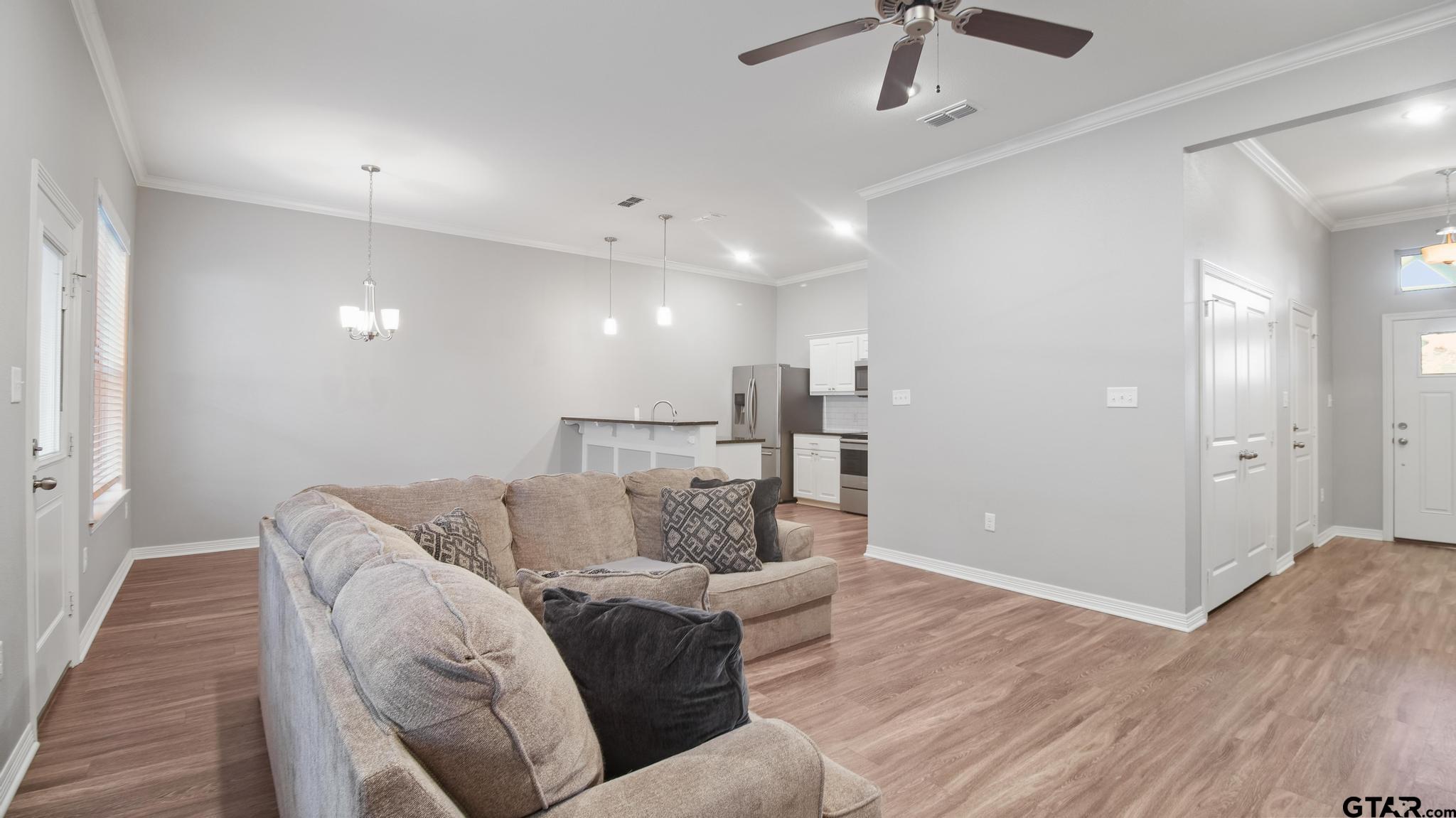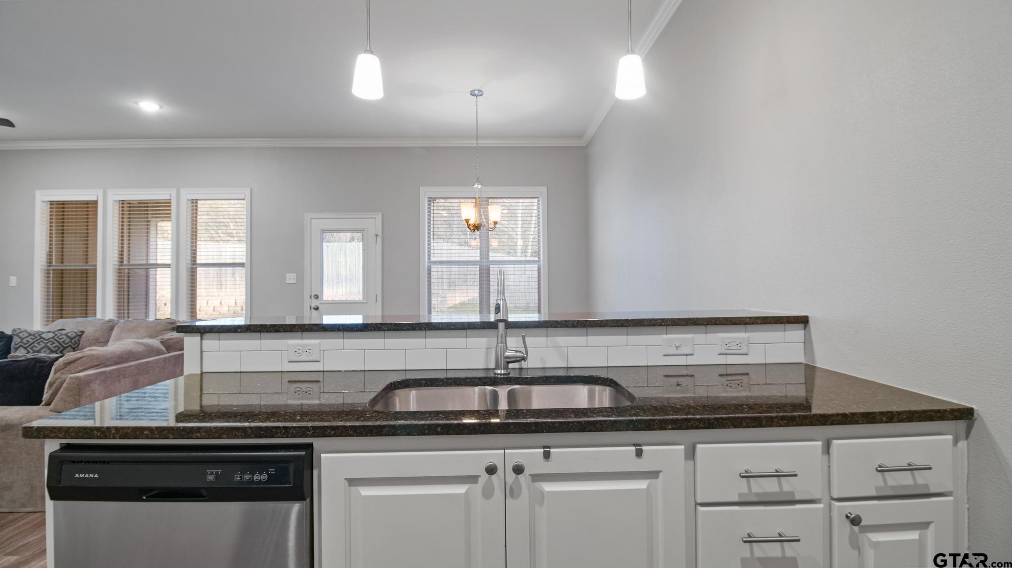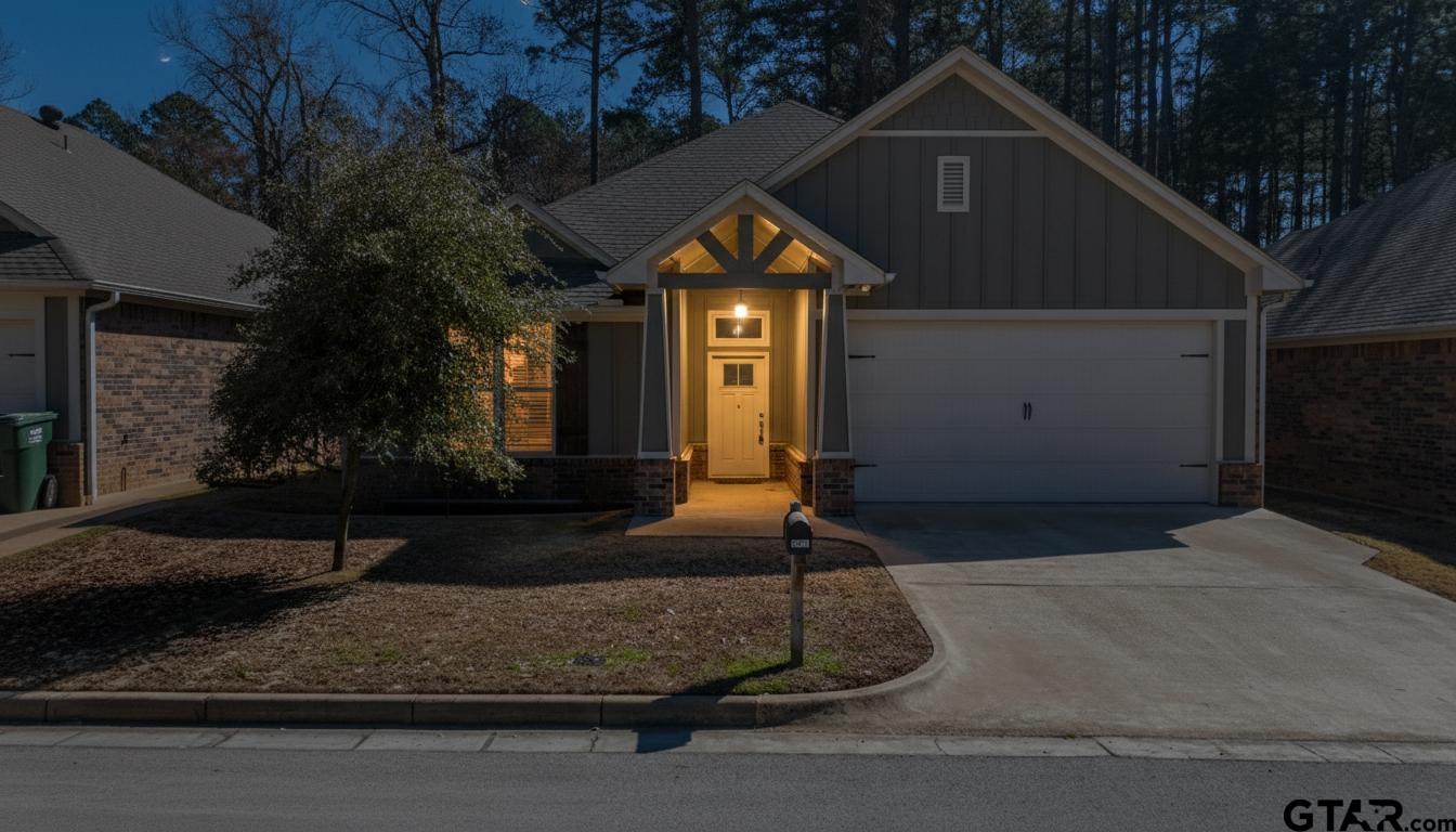 | Charming 3-bedroom, 2-bath home located just minutes north of UT Tyler, offering a bright and airy open-concept design with 10-foot ceilings that create a spacious feel beyond its square footage. Thoughtfully designed for maximum functionality, this home makes excellent use of every inch. The kitchen seamlessly connects to the living and dining areas and showcases black granite countertops, a classic subway tile backsplash, stainless steel appliances, a walk-in pantry, and a convenient breakfast bar perfect for entertaining. The primary suite features elegant crown molding and a tray ceiling for added character. The en-suite bath includes a walk-in shower, granite-topped vanity, and a generous walk-in closet. Two additional bedrooms share a well-appointed guest bath with a tub/shower combination and granite vanity. Enjoy relaxing mornings on the covered back patio, with mature trees behind the property providing both shade and privacy. This all-electric home also includes faux wood blinds and ceiling fans throughout. Meticulously maintained and truly move-in ready, the home offers neutral paint tones and freshly professionally cleaned carpets. Simply bring your furnishings and settle in! | |