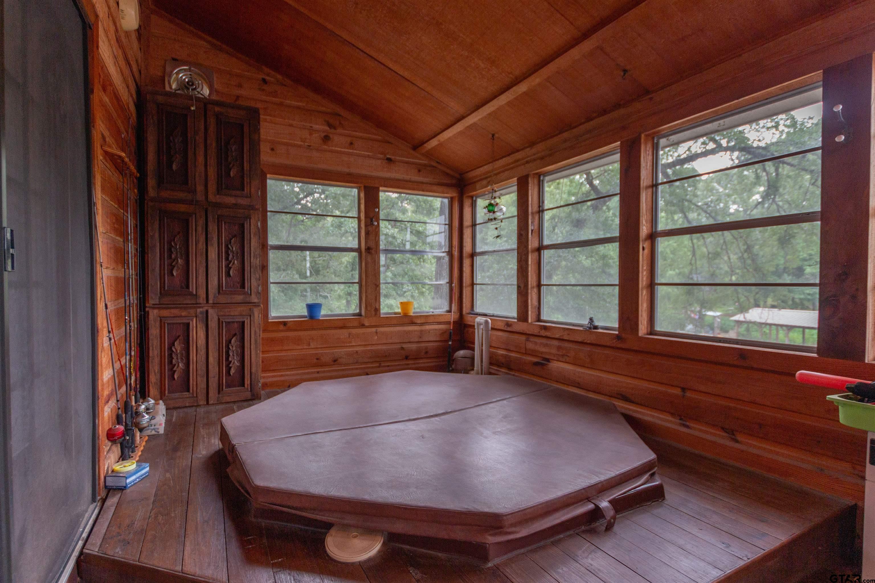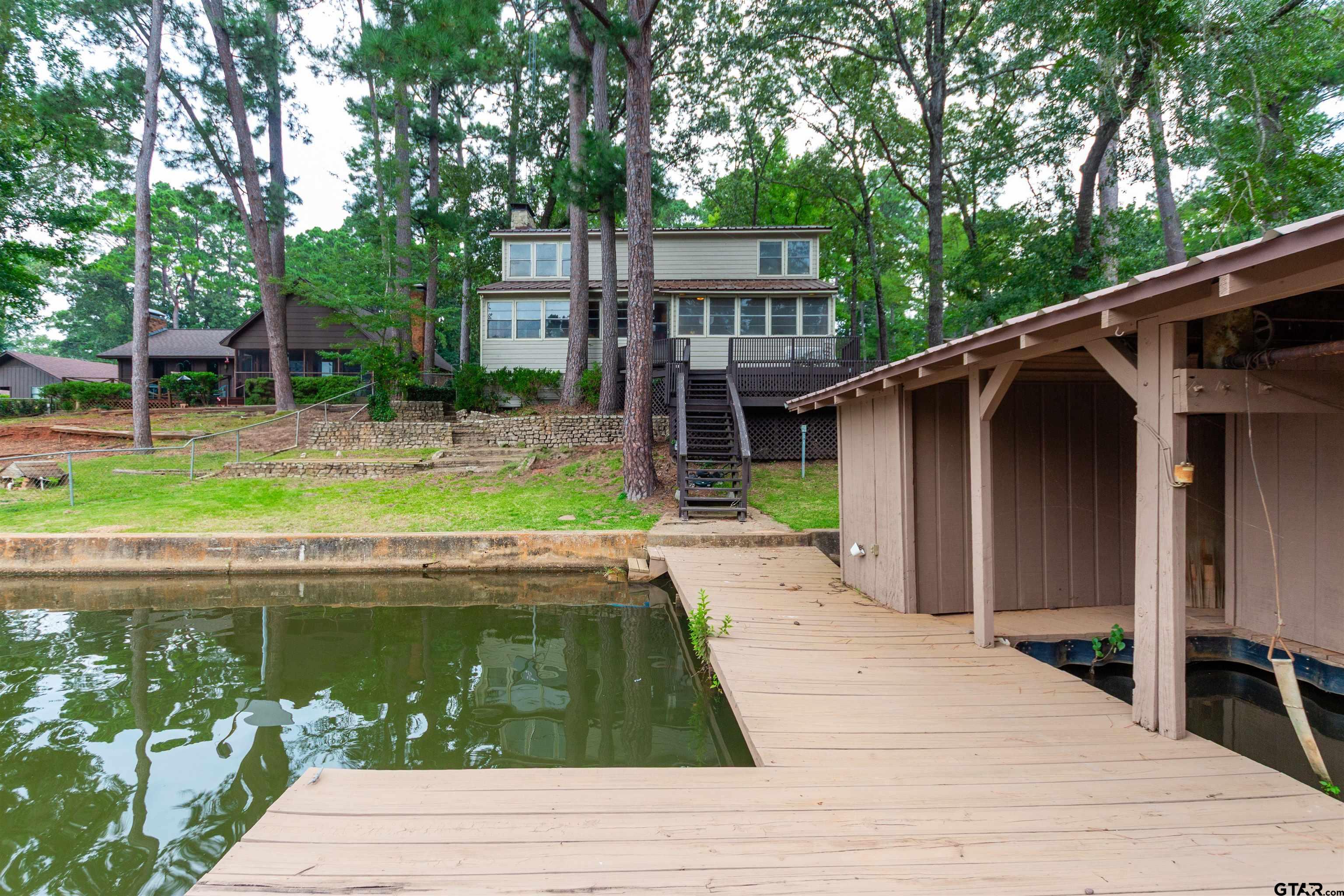 | Step into timeless character and lakeside charm with this unique 3-bedroom, 2-bathroom, 2-story home offering 2,440 square feet of living space. From the moment you enter, you’re greeted by rich wood panel walls, a stunning stone fireplace, and a dramatic spiral staircase that leads to a spacious second floor. The large, carpeted living room is perfect for relaxing or entertaining, while the kitchen and dining area are bright and inviting, featuring classic saloon-style doors that add a touch of vintage flair. Upstairs, an open loft-style area overlooks the main living space below and offers endless possibilities for a game room, office, or additional living space. Enjoy year-round relaxation in the enclosed sunroom with a private hot tub, or head outside to the expansive deck that leads directly to the lake. Whether you're hosting guests or just soaking in the view, the covered boat slip and large deck make lake days easy and enjoyable. With a large carport/garage and extended driveway area, there’s plenty of room for parking, guests, and toys. This one-of-a-kind home combines rustic charm, space, and serene waterfront living—don’t miss your chance to make it yours! | |