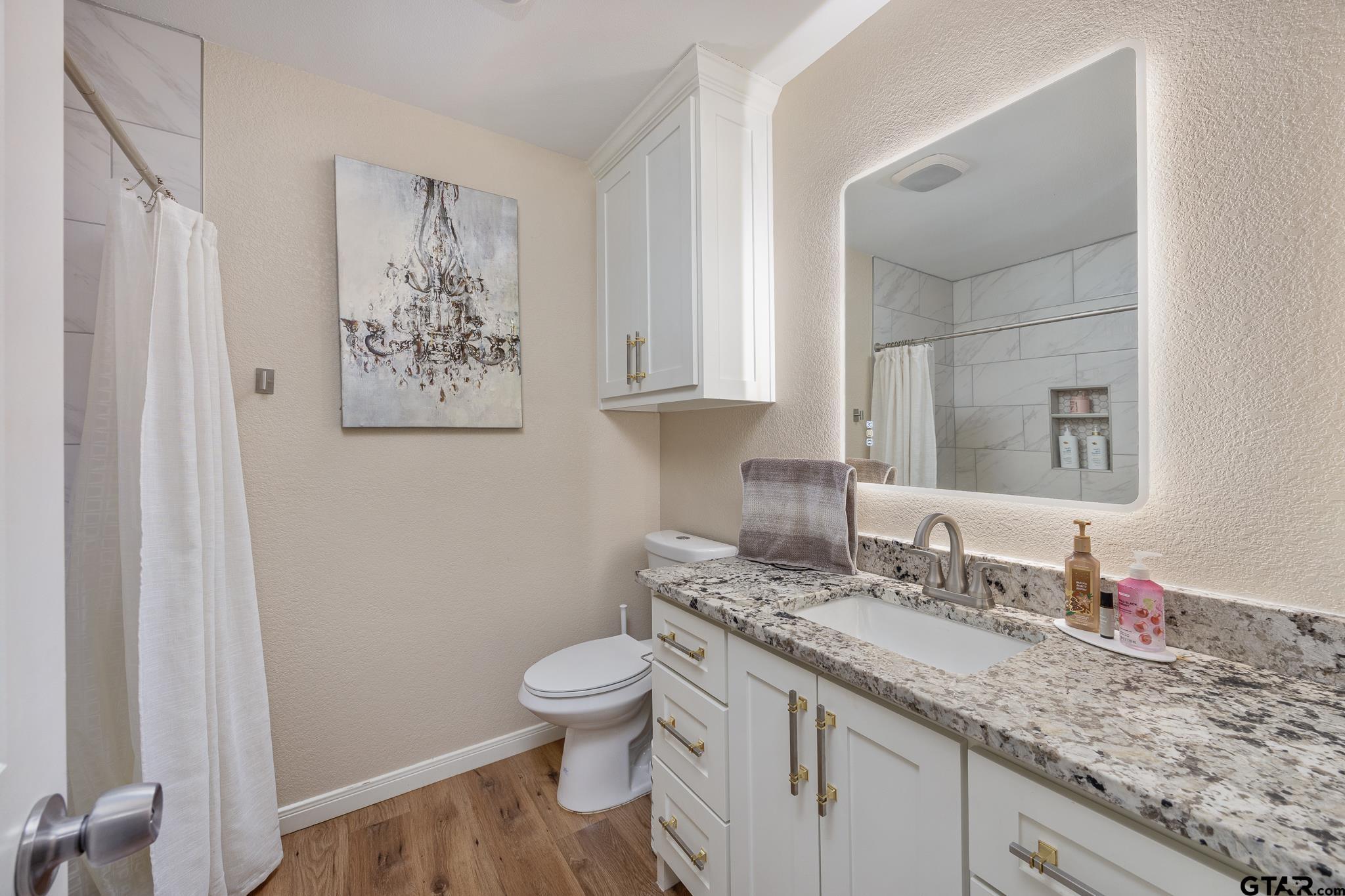 | Situated on a prime corner lot in a convenient downtown location of Bullard, this beautifully updated home blends charm, comfort, and modern design. Mature shade trees frame the property, while the spacious backyard offers room to relax or entertain, complete with a paved outdoor patio ideal for gatherings. Inside, warm wood trim accents complement a cozy brick fireplace, creating an inviting living space. Recent upgrades elevate the home throughout, including a stylish walk-in shower, sleek backlit mirrors, leather-finish stone countertops, soft-close cabinetry, new ceiling fans, and fresh paint throughout. The primary suite features a walk-in closet with a barn door, adding both character and functionality. Additional improvements include new plumbing in the laundry room. A rare combination of location, thoughtful updates, and outdoor appeal makes this home truly move-in ready. | |