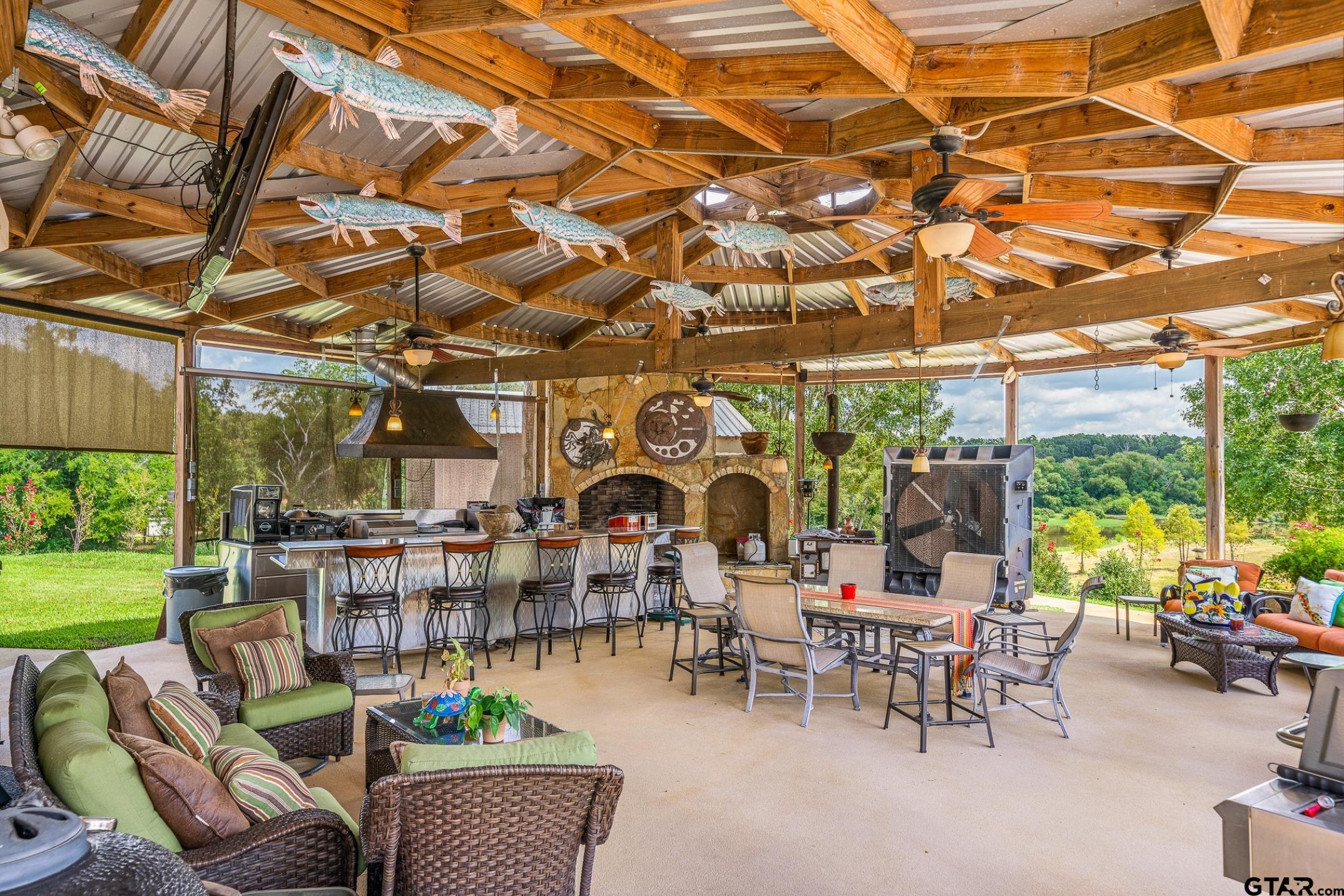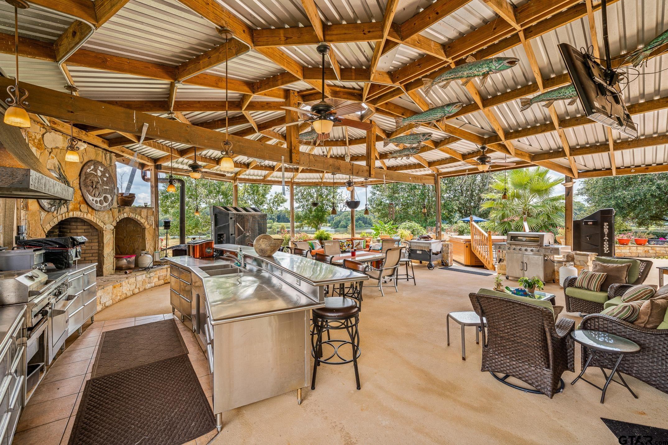 | SPECTACULAR LUXURY ESTATE with 9,442 total livable SQFT and nearly three fourths mile of Lake Palestine frontage. Exceptional 10.88± ac property includes additional 10± ac leased through the Upper Neches River Authority. Ideal for multi generational compound, corporate retreat, event venue, development opportunity, or to live & operate your business with no known restrictions. Grand custom rock electric entry & concrete drive welcomes you to the main residence, guest housing, workshops, apartment, & resort style outdoor living areas with abundant parking. 6,900± square foot primary home is spray foam insulated for energy efficiency and designed for large scale entertaining with expansive living areas, oversized rooms, abundant storage, & refined finishes throughout. Custom chef’s kitchen features maple cabinetry, granite countertops & premium appliances. Luxurious primary suite overlooks the pool & lake and offers enormous closets, dual bathrooms, oversized custom shower, and 2nd utility room. 2nd primary suite provides ideal accommodations for guests or extended living. Outdoor living rivals a private resort with a $50k commercial grade kitchen, pool, spa, and dedicated bath and shower house. Additional amenities include a generator, private dock, boat ramp, stocked pond, quality hay pasture, and extensive concrete parking. Improvements include a 70x40 workshop with paint booth, 40x35 workshop with electricity, 75x50 insulated shop with electricity, air conditioning, automatic garage doors, and 16 foot insulated roll up doors, a 50x30 covered parking structure, a 974 SQFT one bedroom apartment, and 1,560 SQFT, 3 room, 2 bath office or guest residence. Conveniently located just 15 min to Tyler’s medical district & shopping, 20 min to Tyler Airport,& approximately 1.5 hrs from Dallas. Furniture & select personal property negotiable. Wake up to panoramic lake views, entertain on a resort scale, and own one of the most private premier waterfront estates in East Texas. | |