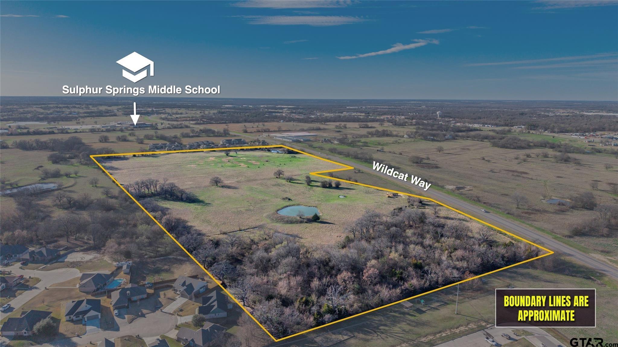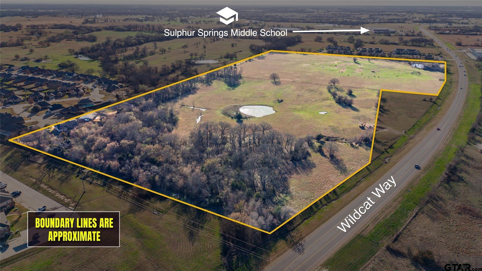 | Expansive opportunities await on this impressive 45.402-acre tract located on newly established Wildcat Way in growing Sulphur Springs. Positioned in a high-growth corridor with close proximity to Interstate 30 and strong traffic counts, this property is ideally situated between two apartment complexes and an established housing development, making it a prime candidate for future development. Currently Ag-exempt with cattle grazing in place, the land features two ponds and barbed-wire perimeter fencing. With surrounding expansion and infrastructure already underway, this tract offers exceptional future potential for residential, multi-family, or investment opportunities. Buyer and or Buyer’s agent to verify all information and confirm intended or future use and any restrictions with the City of Sulphur Springs. | |