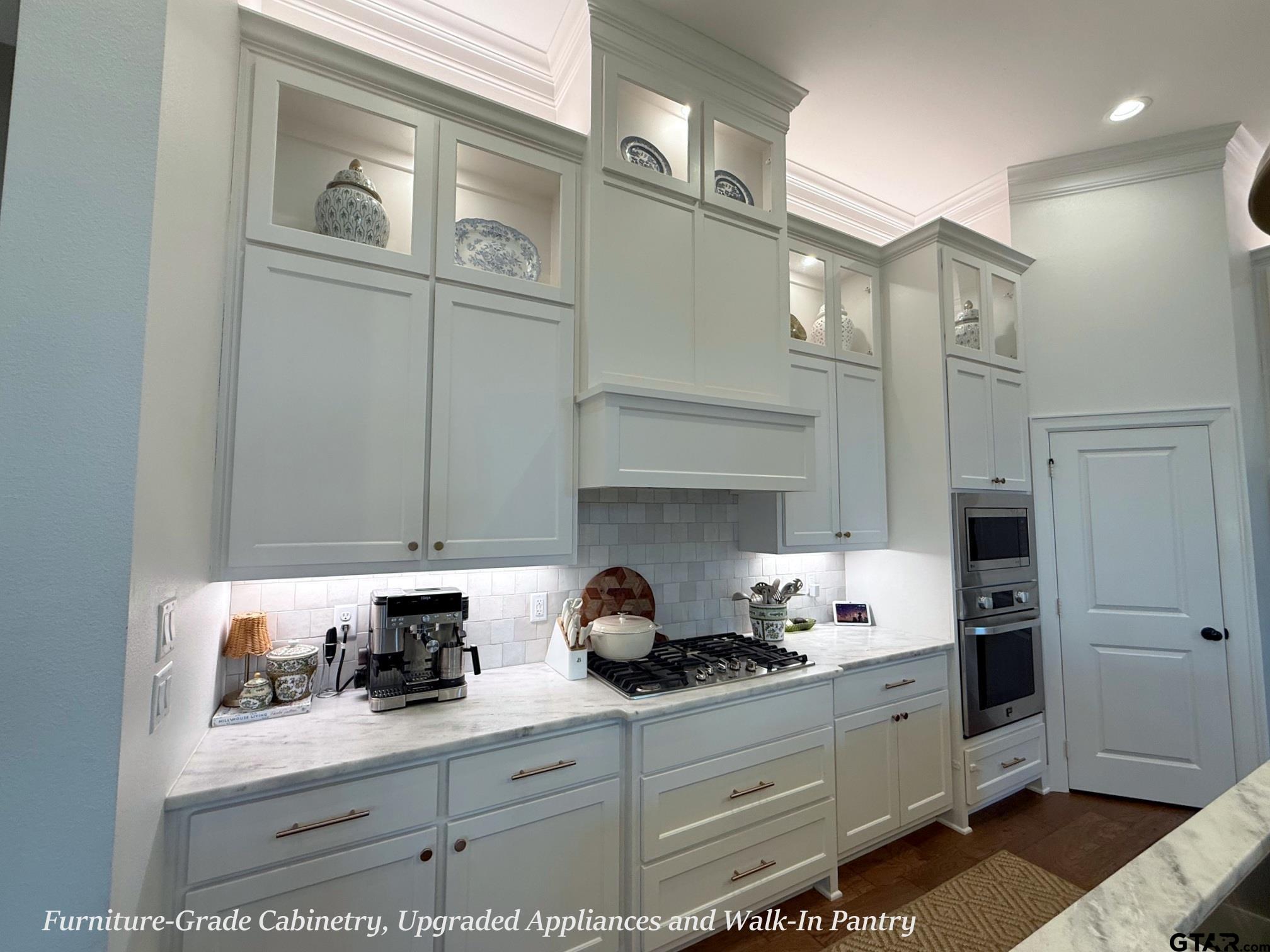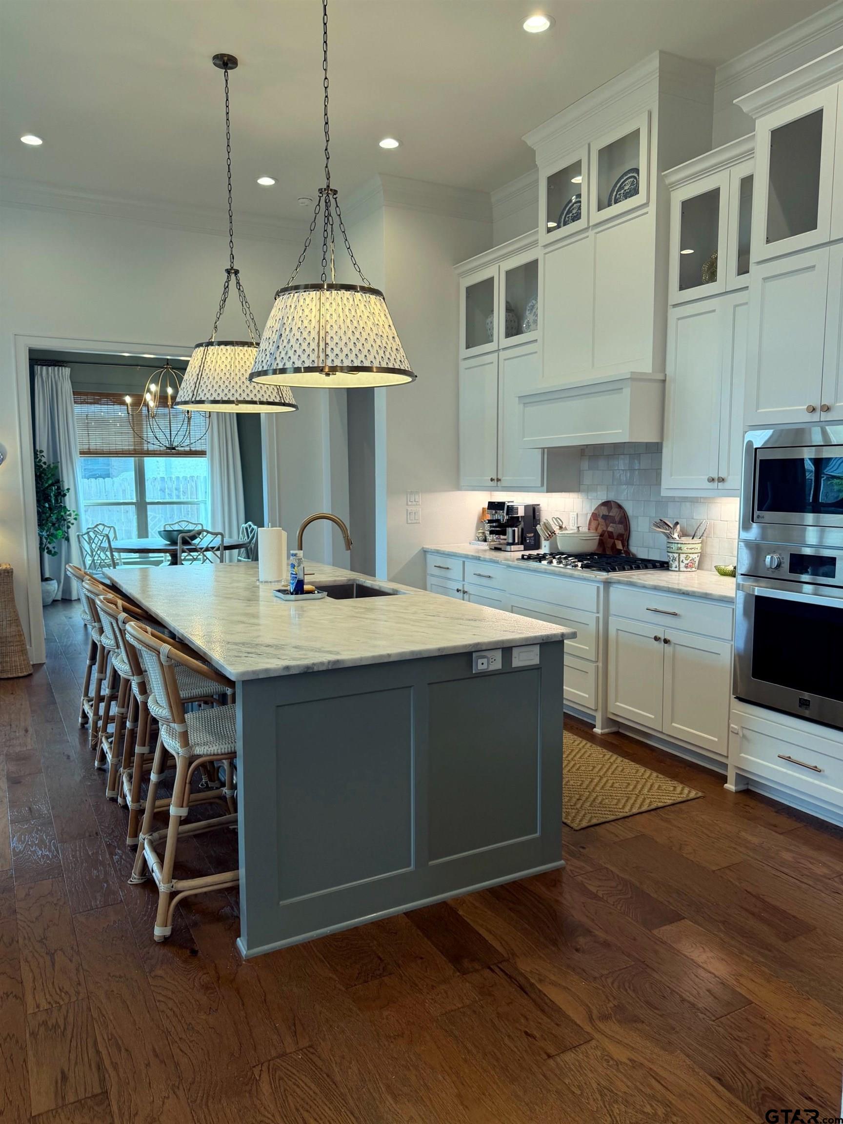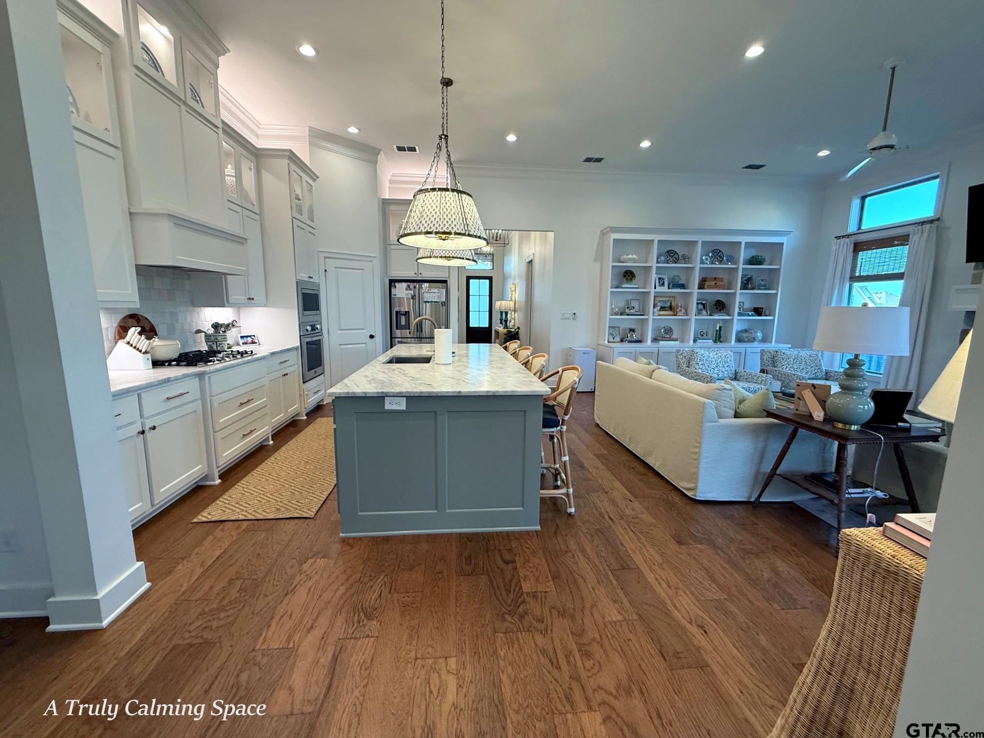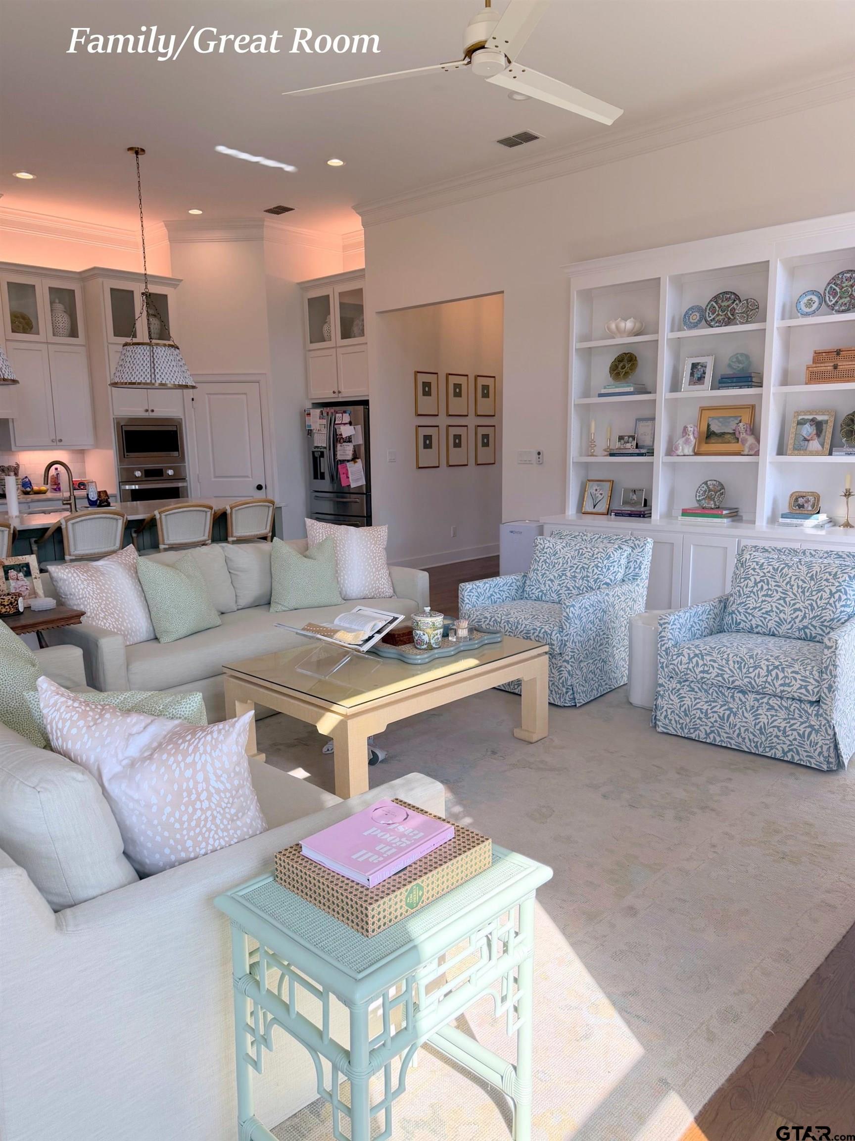 | THIS. HOME. IS. BEAUTIFUL!!! The Stone Arched Entry & 8' Divided Light Entry Door w/Over-Transom opens to 12' Coffered Tray Ceilings w/Updated Fixtures & Gleaming Hardwood Floors that flow Thru-out Entire Home (No Carpet Anywhere!). Continuing on is a Light-Filled Family/Great Rm w/Floor to Ceiling Windows, Custom Built-Ins, Stone Fireplace, Crown Moldings, Recessed Lighting & French Drs to Covered Outdoor Entertaining Area. The Family Rm is open to Island Kitchen w/Leathered Stone Counters, Hand-thrown Tile Backsplash, Soaring Furniture Grade Shaker Cabinets w/Lit Transom Uppers, Recessed & Accent Uplighting, High-End Stainless-Steel Appliances, Updated Bronzed-Gold Faucets, Fixtures, Custom Pendant Lighting & Walk-In Pantry. The Gorgeous Dining Room feels like its own Destination w/Vaulted Plank Ceiling, New Rich, High-Saturation Paint, Upgraded Chandelier & Layered Window Treatments. The Stunning Master Bedroom offers High Tray Ceilings, Crown Moldings, Recessed Lighting & Opens to Spa-Like Master En-Suite w/Separate Vanities w/Leathered Stone Counters, Updated Bronzed-Gold Faucets & Fixtures Throughout, Simple & Classic Free-Standing Tub, Oversized Level-Entry Shower w/Bench Seat, Rain & Wall-Mounted Spray Heads. A Separate Water Closet & Big Walk-In Closet completes the Space. Across the Home are three Generous Guest Bedrooms (one currently used as an office), a Very Nice Hall Guest Bath w/Stone Counters & Tile Tub/Shower Surround. A Pretty & Conveniently Placed Guest Powder Room off the Entry Hall features New Designer Paper & Bronzed-Gold Mirror, Faucet & Fixtures. Continuing beyond is the Entrance to the 2-Car Side-Entry Garage & Large Laundry Rm w/Window, Lots of Cabinetry w/Stone Counters & a Handsome Built-In Drop Zone w/Bench Seating. Off the Family Room is the Covered Outdoor Entertaining Area, Shaded Completely from the Afternoon Sun overlooking the fully Privacy-Fenced, Automatically Sprinklered Lawn. HURRY! You won't want to miss this one!!! | |