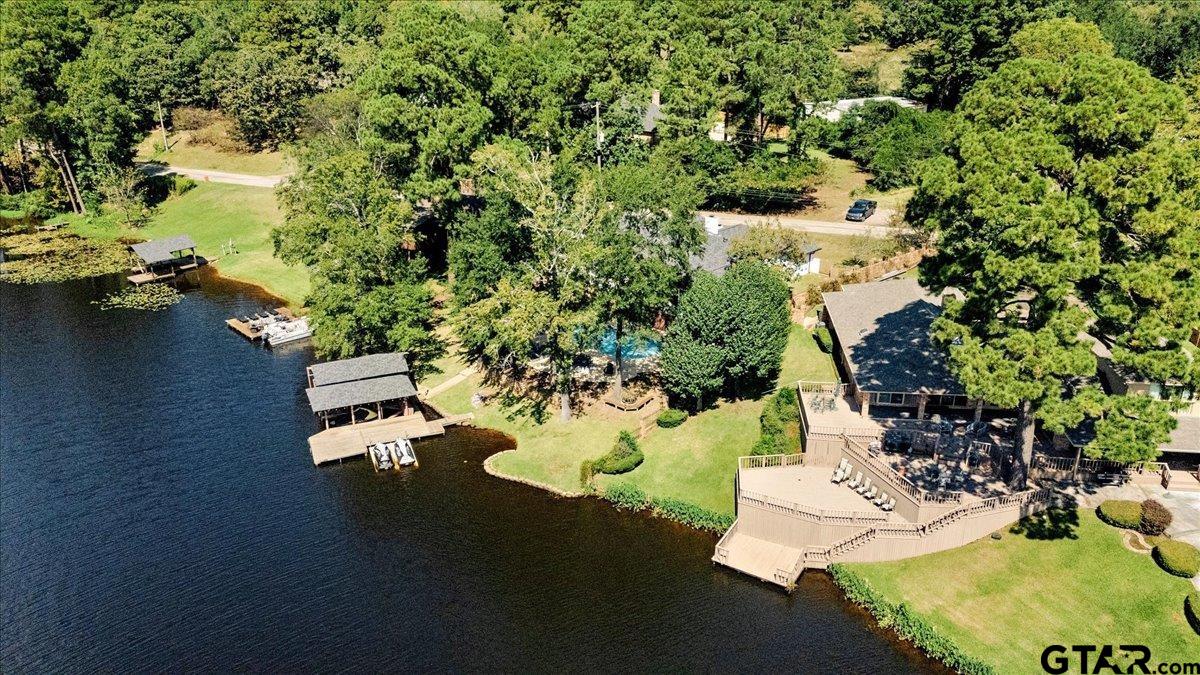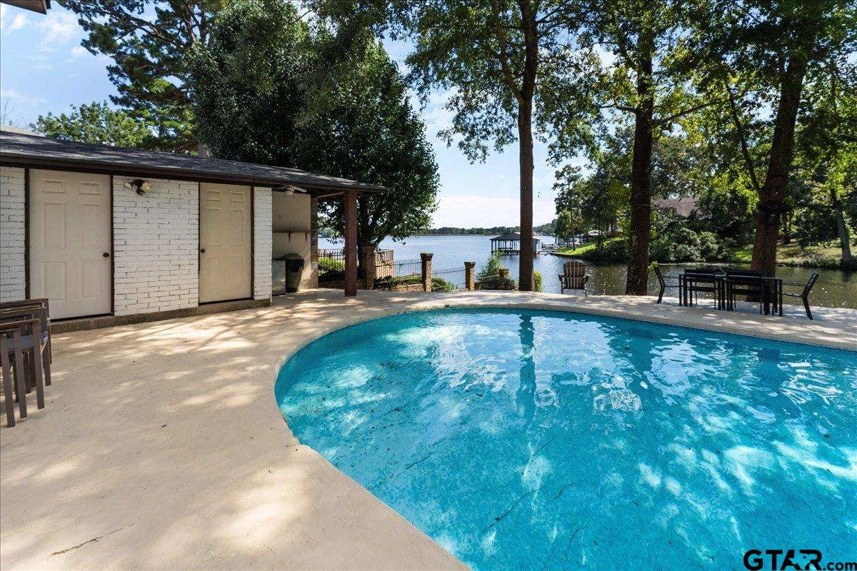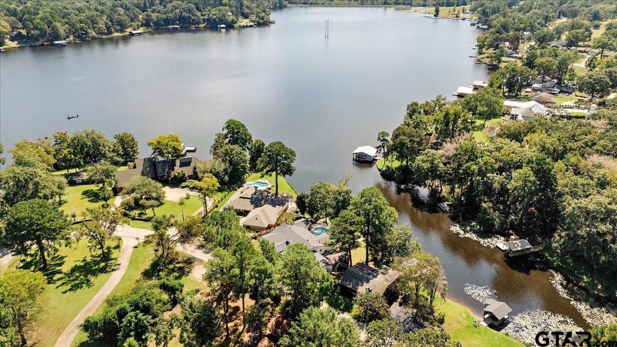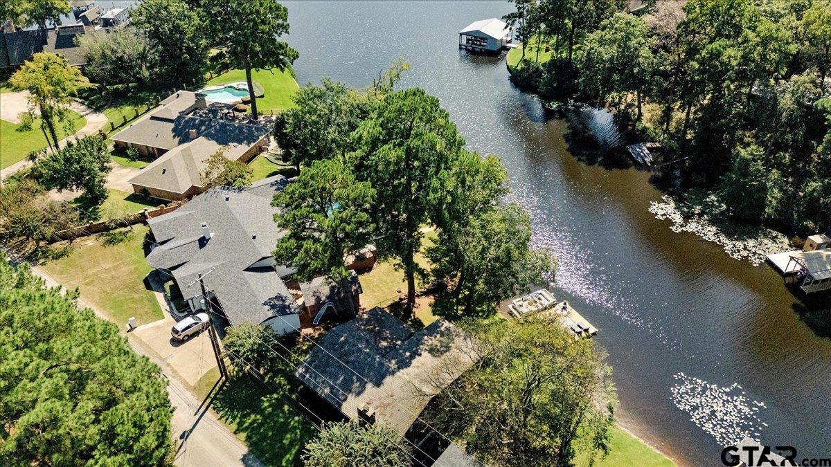 | Discover lakeside luxury at 2002 W Lake Dr, a stunning 4-bedroom, 2-full-bath, 1-half-bath home nestled on the serene shores of Lake Gladewater in the heart of East Texas. Perfect for use as a primary residence, vacation home or vacation rental, you couldn't ask for a better location in a calm cove right off the main lake. Spanning 3,534 sq ft on a 0.5-acre lot, this 1978-built waterfront retreat offers panoramic lake views and modern comforts. The expansive master suite boasts floor-to-ceiling windows, flooding the space with natural light, a deep jetted tub, separate shower, three closets, and private access to an upper balcony overlooking the sparkling in-ground pool and lake. Ideal for entertaining, the pool area includes a pool house with a half bath and outdoor shower. The property features a boathouse with two lifts, two jet ski ramps, and a private fishing pier, ideal for lake enthusiasts. A spacious great room with large windows showcases breathtaking water views, complemented by a versatile second living/game room that could serve as a 5th bedroom. Additional highlights include a 3-car garage, hardwood and carpeted flooring, and an extra lot across the street for added privacy or potential. As a leasehold property on Lake Gladewater, a $200 transfer fee and $75 per year apply. Don’t miss this rare opportunity to own a piece of paradise with endless recreational possibilities! | |