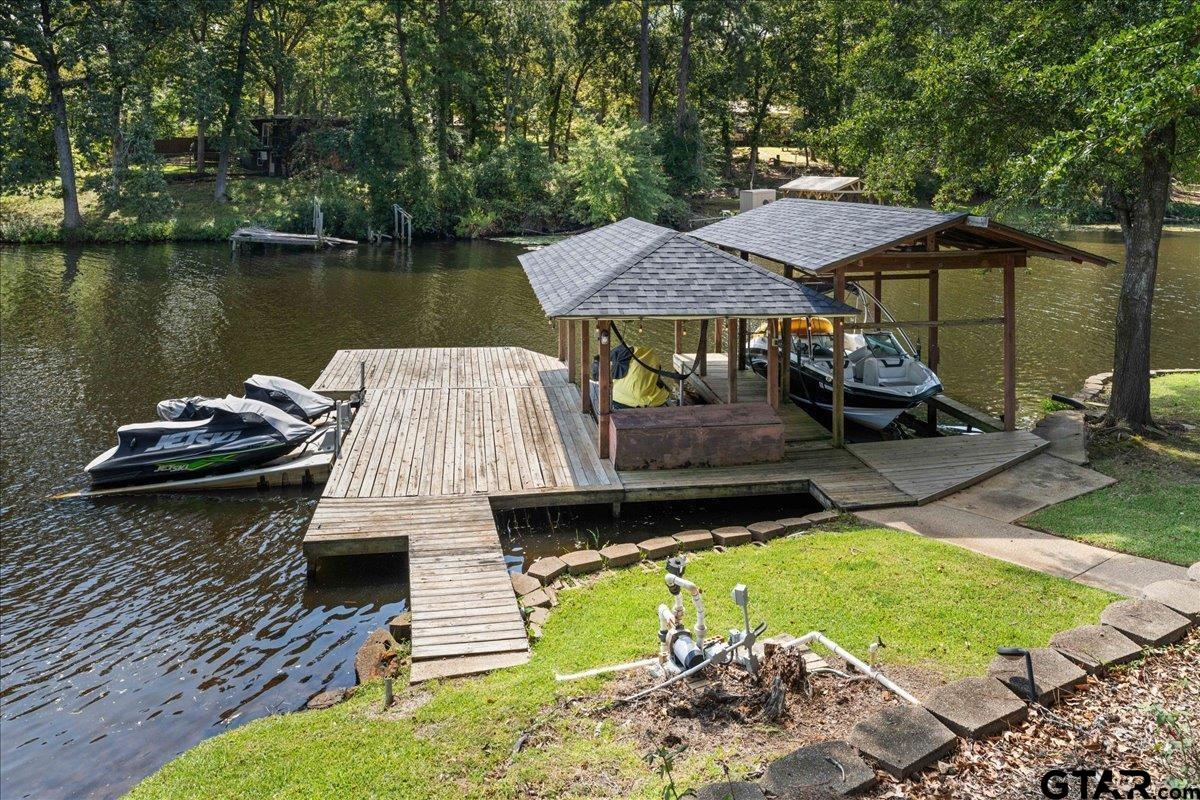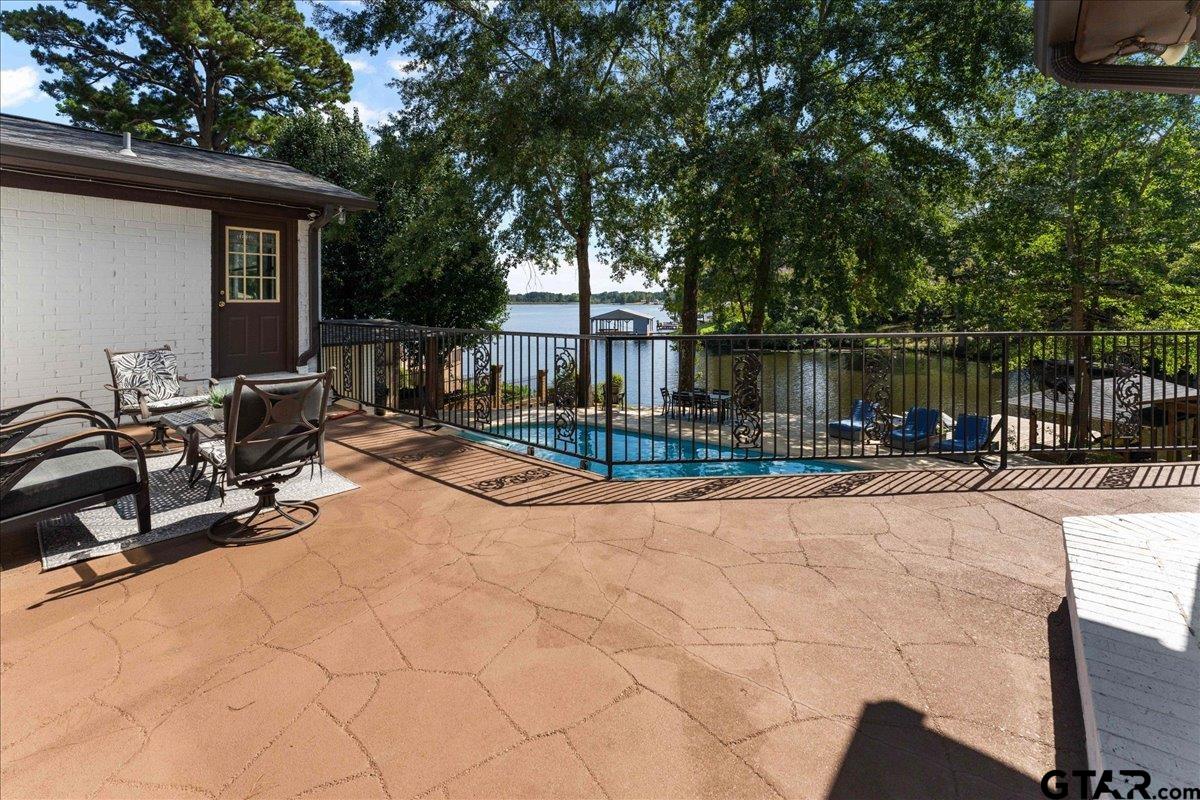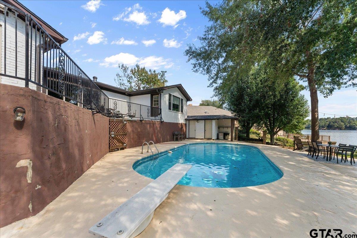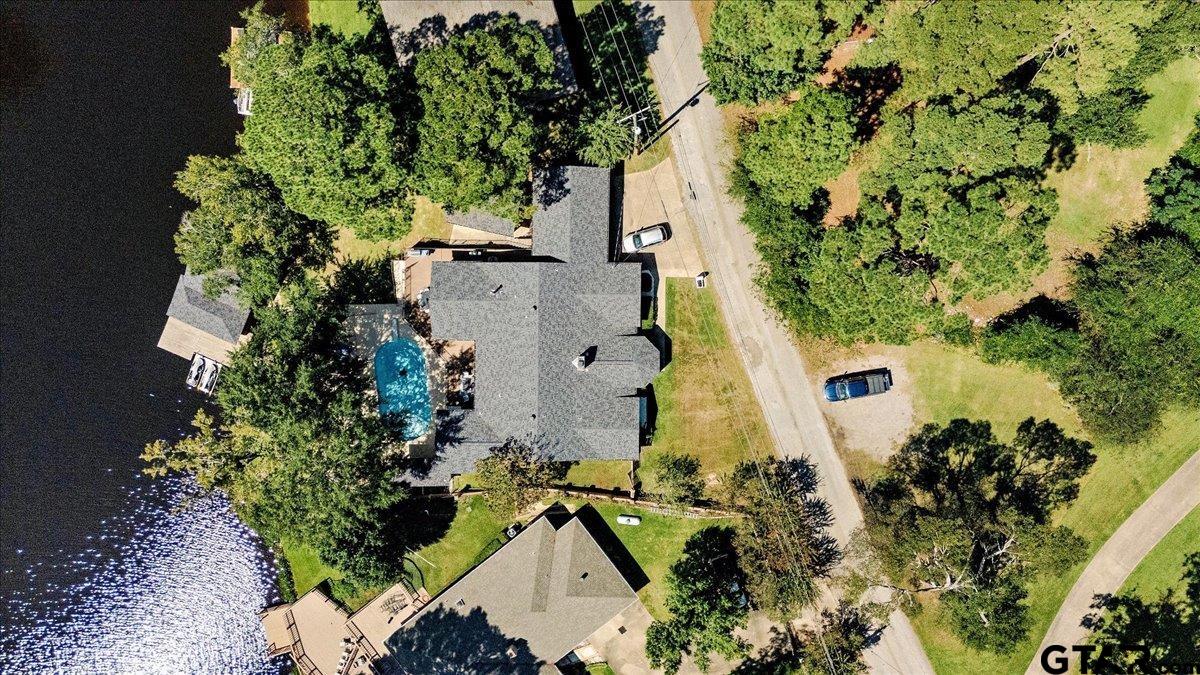 | Discover lakeside luxury at 2002 W Lake Dr, a stunning 4-bedroom, 2-full-bath, 1-half-bath home nestled on the serene shores of Lake Gladewater in the heart of East Texas. Perfect for use as a primary residence, vacation home or vacation rental, you couldn't ask for a better location in a calm cove right off the main lake. Spanning 3,534 sq ft on a 0.5-acre lot, this 1978-built waterfront retreat offers panoramic lake views and modern comforts. The expansive master suite boasts floor-to-ceiling windows, flooding the space with natural light, a deep jetted tub, separate shower, three closets, and private access to an upper balcony overlooking the sparkling in-ground pool and lake. Ideal for entertaining, the pool area includes a pool house with a half bath and outdoor shower. The property features a boathouse with two lifts, two jet ski ramps, and a private fishing pier, ideal for lake enthusiasts. A spacious great room with large windows showcases breathtaking water views, complemented by a versatile second living/game room that could serve as a 5th bedroom. Additional highlights include a 3-car garage, hardwood and carpeted flooring, and an extra lot across the street for added privacy or potential. As a leasehold property on Lake Gladewater, a $200 transfer fee and $75 per year apply. Don’t miss this rare opportunity to own a piece of paradise with endless recreational possibilities! | |