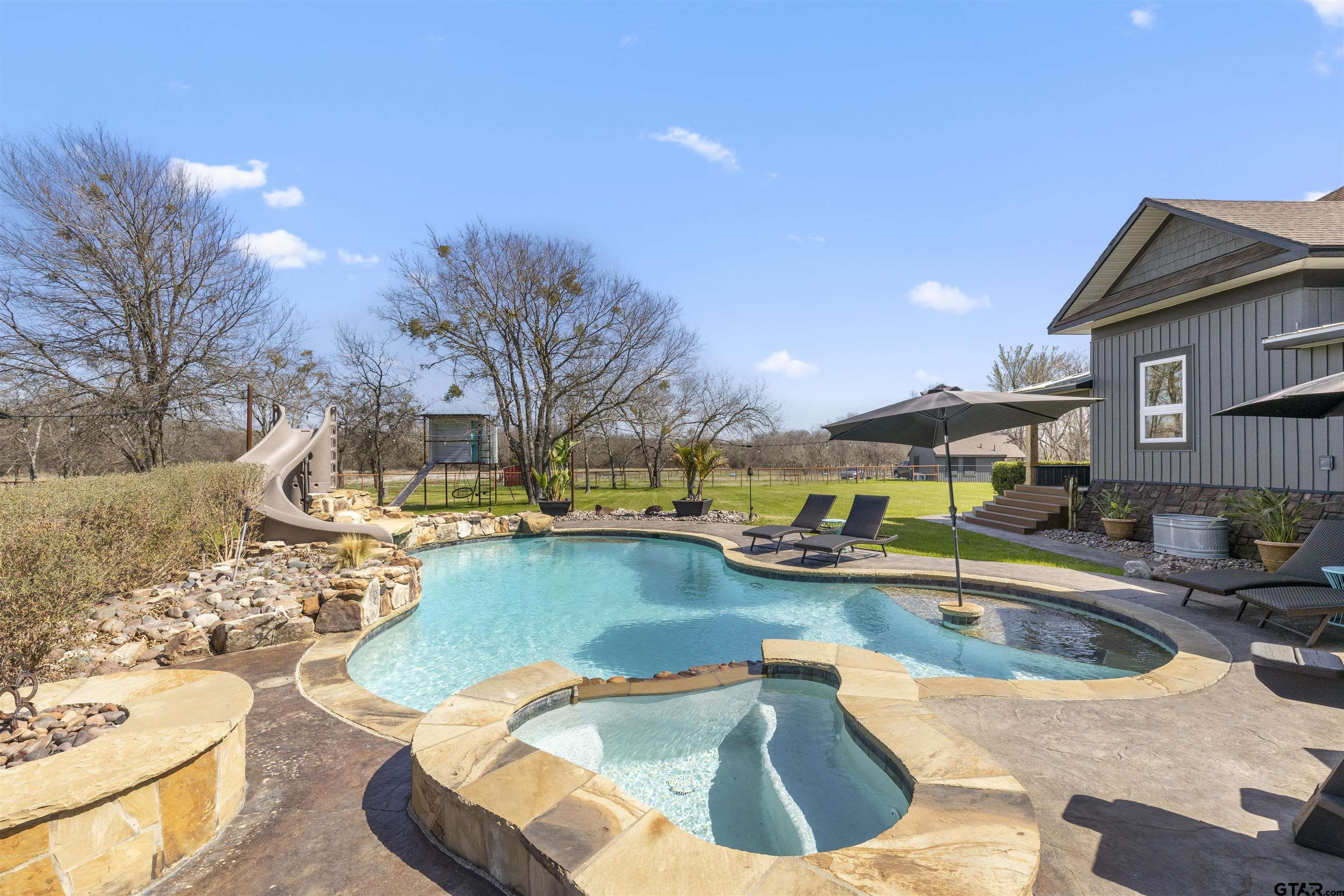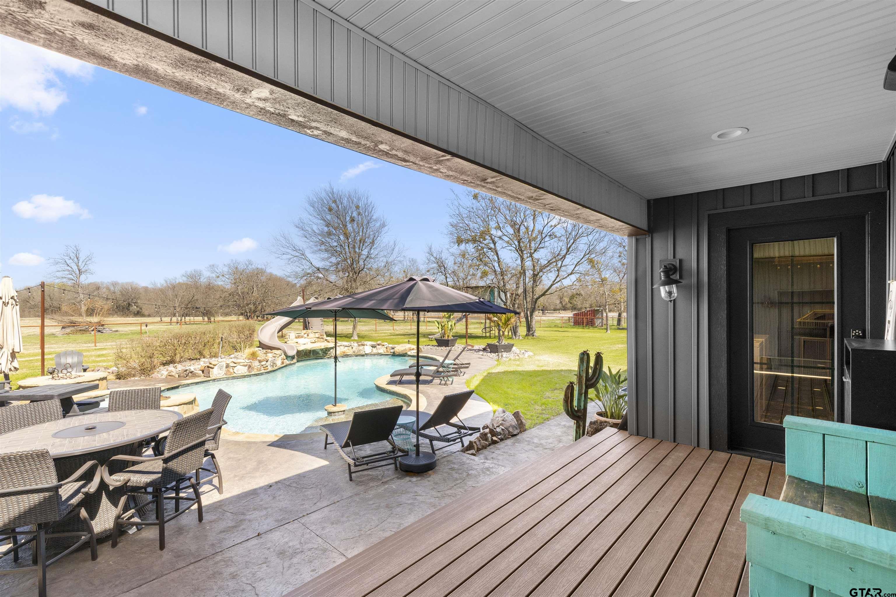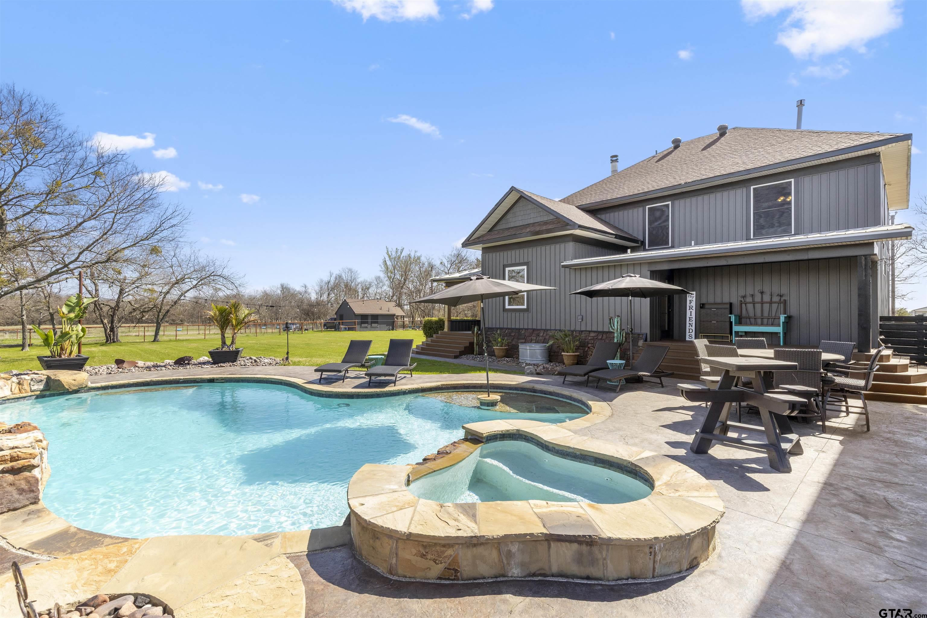 | PRICED $25K UNDER RECENT APPRAISED VALUE! Rooted in Hunt County history dating back to 1903, this one-of-a-kind 33-acre AG EXEMPT estate offers privacy, character, and true Texas living. Fully fenced acreage features 4 stocked ponds and abundant wildlife including deer, wild hogs, and mature 8-point bucks, creating a hunter’s dream just minutes from town. Thoughtfully updated while preserving its historic charm, the main home offers 5 bedrooms and 3.5 bathrooms with beautiful hardwood floors, an original staircase, cedar closets, custom built-ins, and two double-sided fireplaces. Oversized double-hung windows with full solar screens provide energy efficiency while filling the home with natural light. Upstairs includes Jack-and-Jill suites with original hardwood floors and a third-story loft ideal for an office or workout space. The spacious primary suite features large windows overlooking the property, a double-entry walk-in shower, soaking tub, and separate vanities. The farmhouse kitchen offers granite countertops, abundant cabinetry, and views of the backyard oasis. Outdoor living is exceptional with a 9.5-foot heated gunite pool and spa featuring a slide, sun shelf, expansive decking, and firepit. Above the heated 32x32 garage sits a 1,024 SF game room complete with full bath, bar area, and balcony overlooking the acreage. A detached in-law or salon suite includes its own bathroom, plumbing for a future shower or kitchenette, and a separate solar-powered gated entrance. Additional features include an 80x80 steel-frame shop with lean-to, a 60x40 insulated shop with electric and water, RV hookup, new vinyl siding, 2021 roof on house and salon, 2025 garage roof, and 2025 HVAC for the salon and garage. The main home is serviced by a low-pressure dosage septic system, with a separate aerobic system for the salon. Zoned to A-rated Caddo Mills ISD. A rare property that is nearly impossible to duplicate. Square footage and room count include the game room and salon. | |