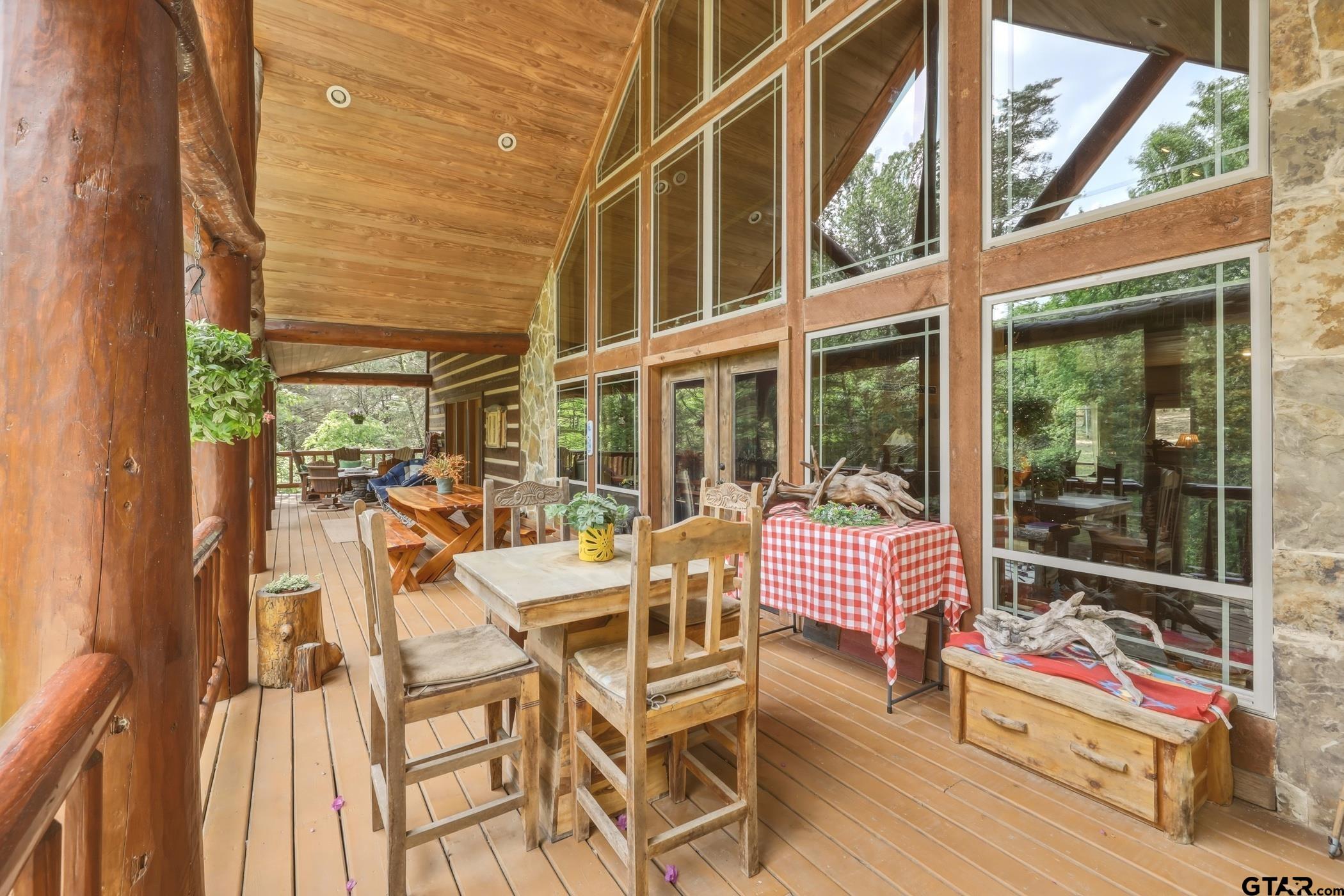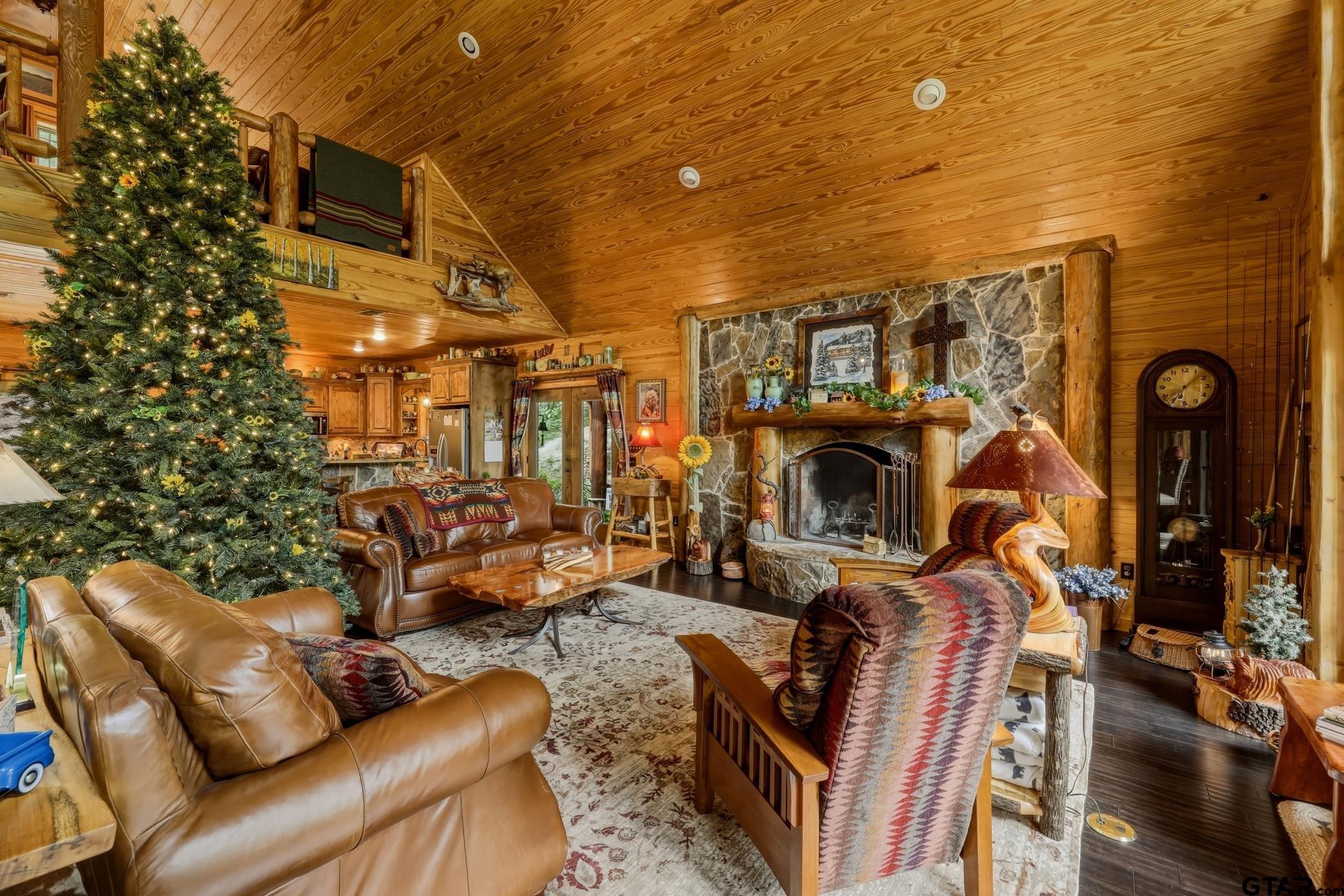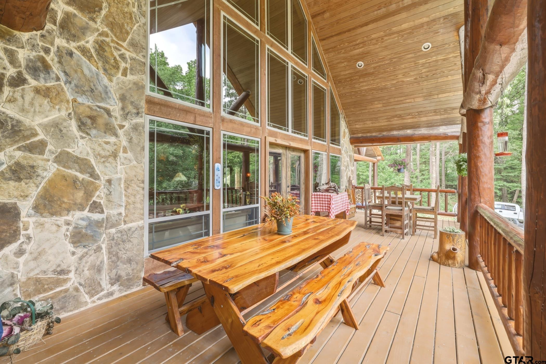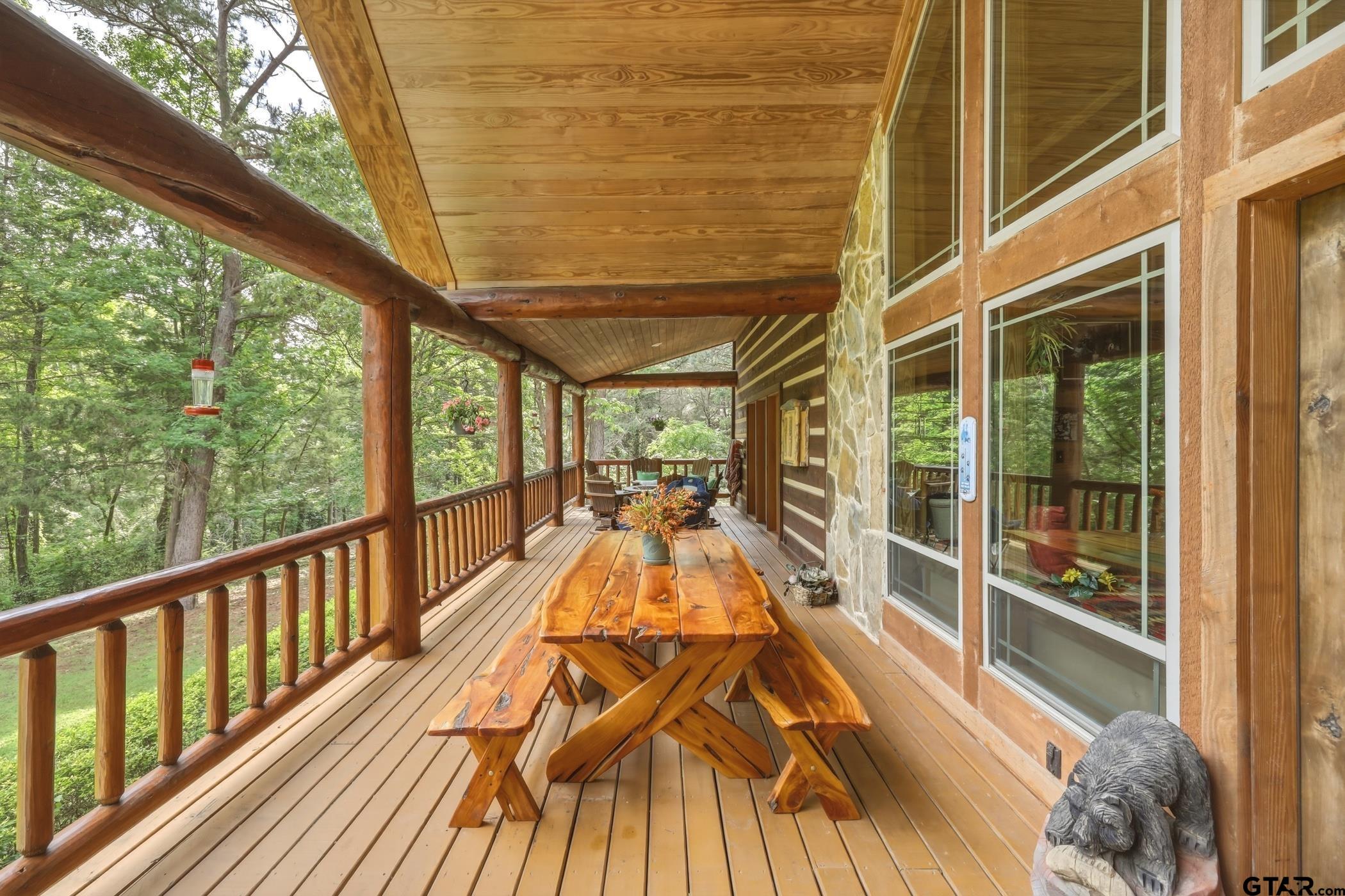 | “Location, location, location.†Set within one of the area’s most desirable and established corridors along FM 2137, this property is a place where serene, picturesque surroundings, lush, tranquil landscape, and the gentle presence of an ever-flowing freshwater stream, come together to create something truly special. The land itself feels like a private sanctuary. Ten and a half wooded acres create a peaceful, secluded haven where wildlife roams freely and nature flourishes, offering a setting that is both tranquil and breathtaking in every season. Crafted entirely of wood with no sheetrock, this exquisite, beautifully crafted log home exudes authentic lodge-style character, rich with warmth and texture. Spanning approximately 3,300+ square feet, the home blends timeless rustic charm with modern livability—equally suited for a full-time residence or a restorative weekend getaway. Inside, soaring vaulted ceilings and a wood-burning fireplace anchor the heart of the home, creating an inviting and intimate atmosphere. Seven fire features—including interior fireplace, fireboxes, and an outdoor grill—offer cozy gathering spaces throughout, enhancing both quiet evenings and memorable entertaining. Expansive covered porches and open-air seating areas are thoughtfully positioned to embrace the surrounding landscape, inviting you to slow down and take in the sights and sounds of nature. The kitchen is well-appointed with granite countertops, stainless steel appliances, and abundant cabinetry, while the primary suite provides a spacious and private retreat. Additional bedrooms, flexible living spaces, and ample storage ensure comfort and functionality throughout. With deeded paved road access, the property remains easily accessible while preserving its sense of peaceful seclusion. Select lodge-style furnishings are negotiable, offering the potential for a seamless, turnkey transition. This isn’t just a house…it’s an experience. | |
