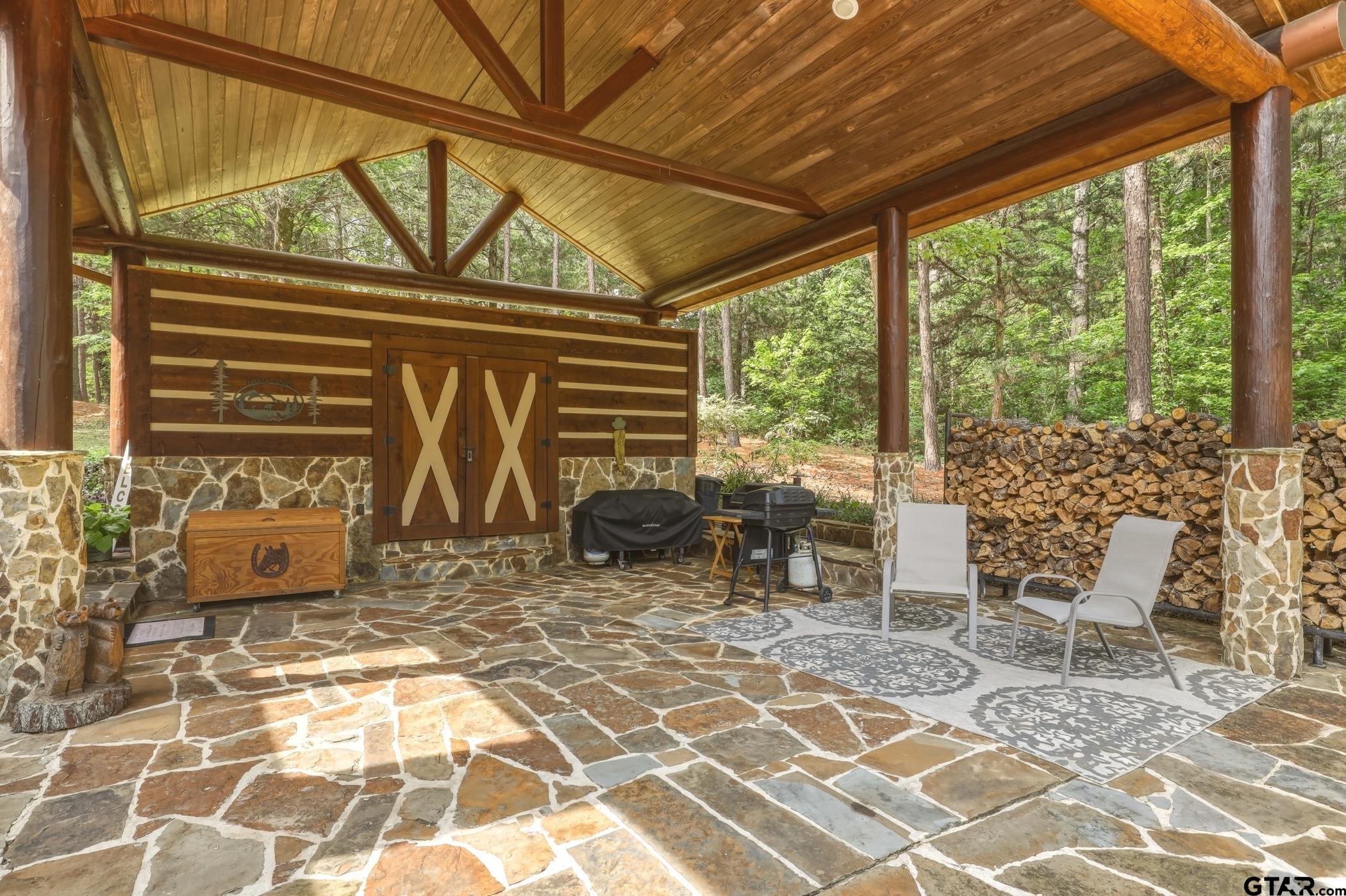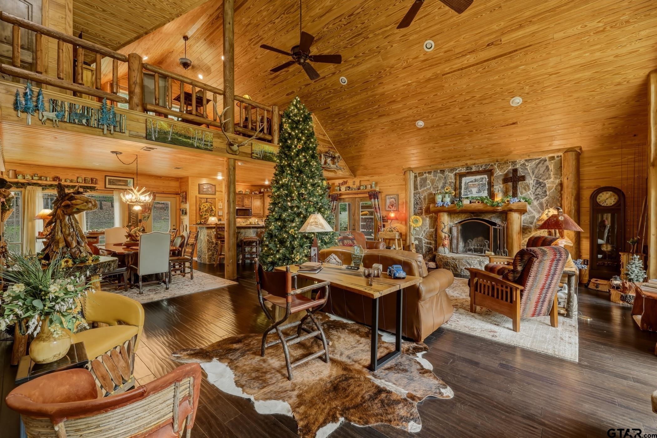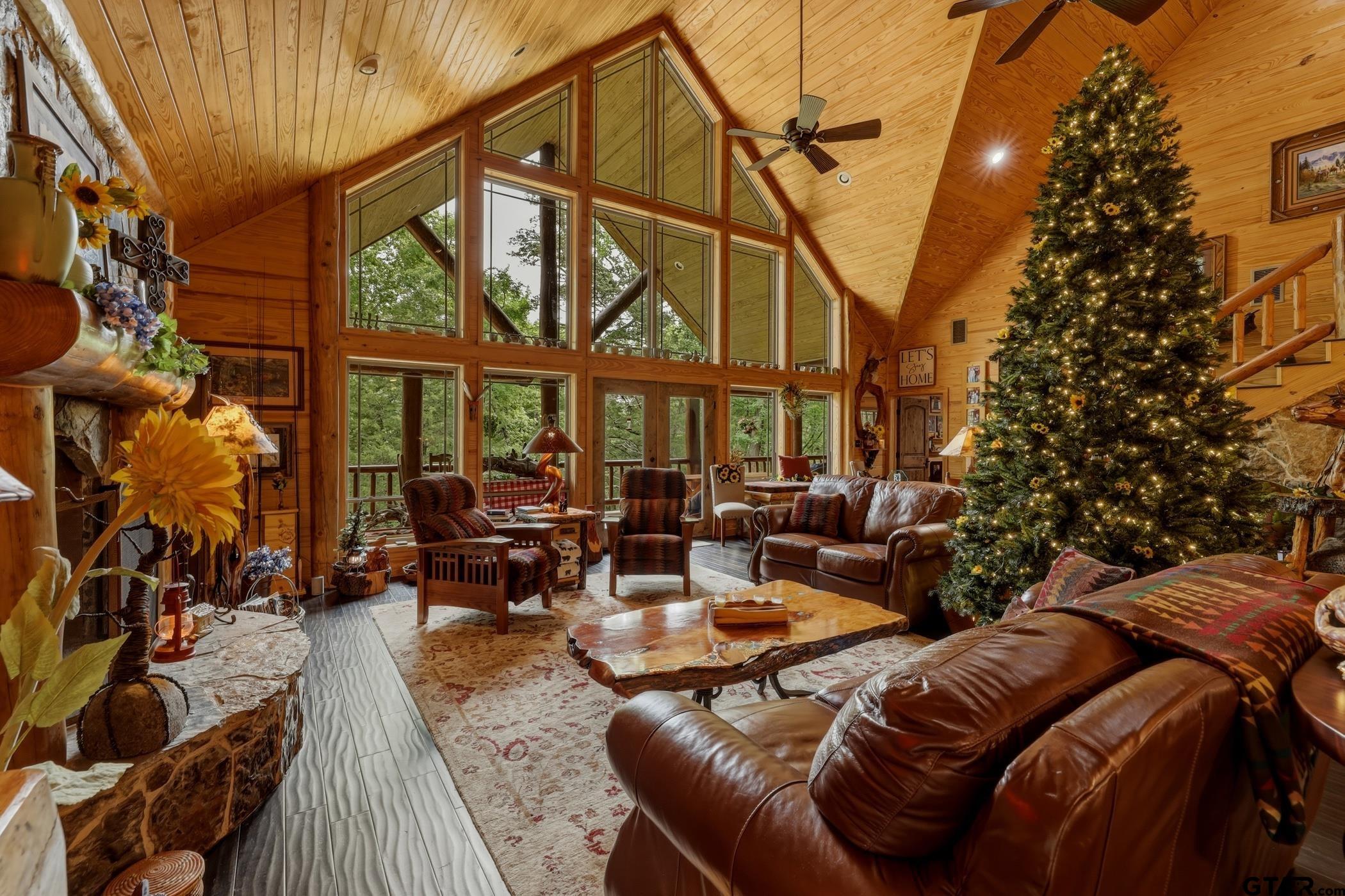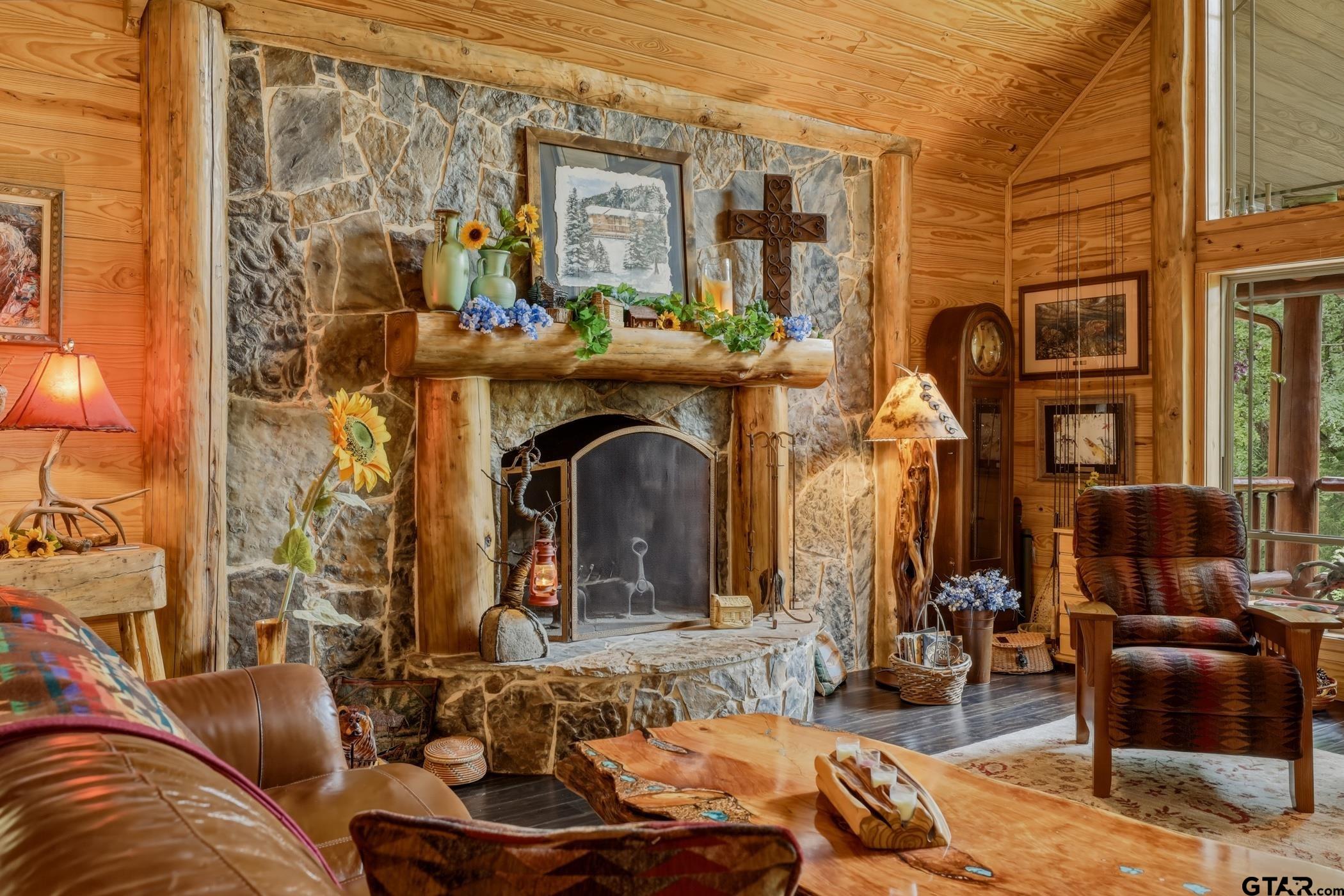| “Location, location, location.†Set within one of the area’s most desirable and established corridors along FM 2137, this property is a place where serene, picturesque surroundings, lush, tranquil landscape, and the gentle presence of an ever-flowing freshwater stream, come together to create something truly special. The land itself feels like a private sanctuary. Ten and a half wooded acres create a peaceful, secluded haven where wildlife roams freely and nature flourishes, offering a setting that is both tranquil and breathtaking in every season. Crafted entirely of wood with no sheetrock, this exquisite, beautifully crafted log home exudes authentic lodge-style character, rich with warmth and texture. Spanning approximately 3,300+ square feet, the home blends timeless rustic charm with modern livability—equally suited for a full-time residence or a restorative weekend getaway. Inside, soaring vaulted ceilings and a wood-burning fireplace anchor the heart of the home, creating an inviting and intimate atmosphere. Seven fire features—including interior fireplace, fireboxes, and an outdoor grill—offer cozy gathering spaces throughout, enhancing both quiet evenings and memorable entertaining. Expansive covered porches and open-air seating areas are thoughtfully positioned to embrace the surrounding landscape, inviting you to slow down and take in the sights and sounds of nature. The kitchen is well-appointed with granite countertops, stainless steel appliances, and abundant cabinetry, while the primary suite provides a spacious and private retreat. Additional bedrooms, flexible living spaces, and ample storage ensure comfort and functionality throughout. With deeded paved road access, the property remains easily accessible while preserving its sense of peaceful seclusion. Select lodge-style furnishings are negotiable, offering the potential for a seamless, turnkey transition. This isn’t just a house…it’s an experience. | |