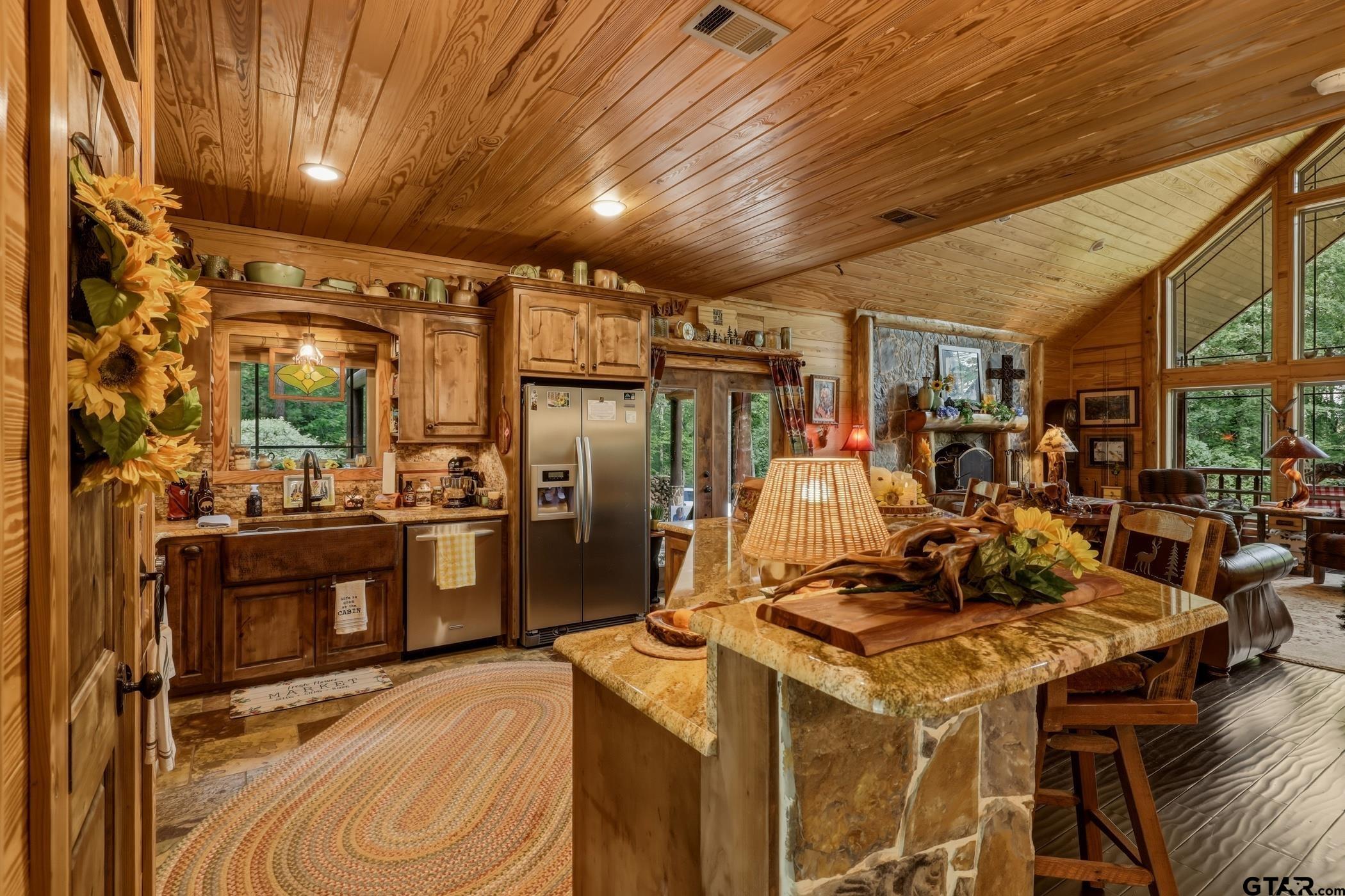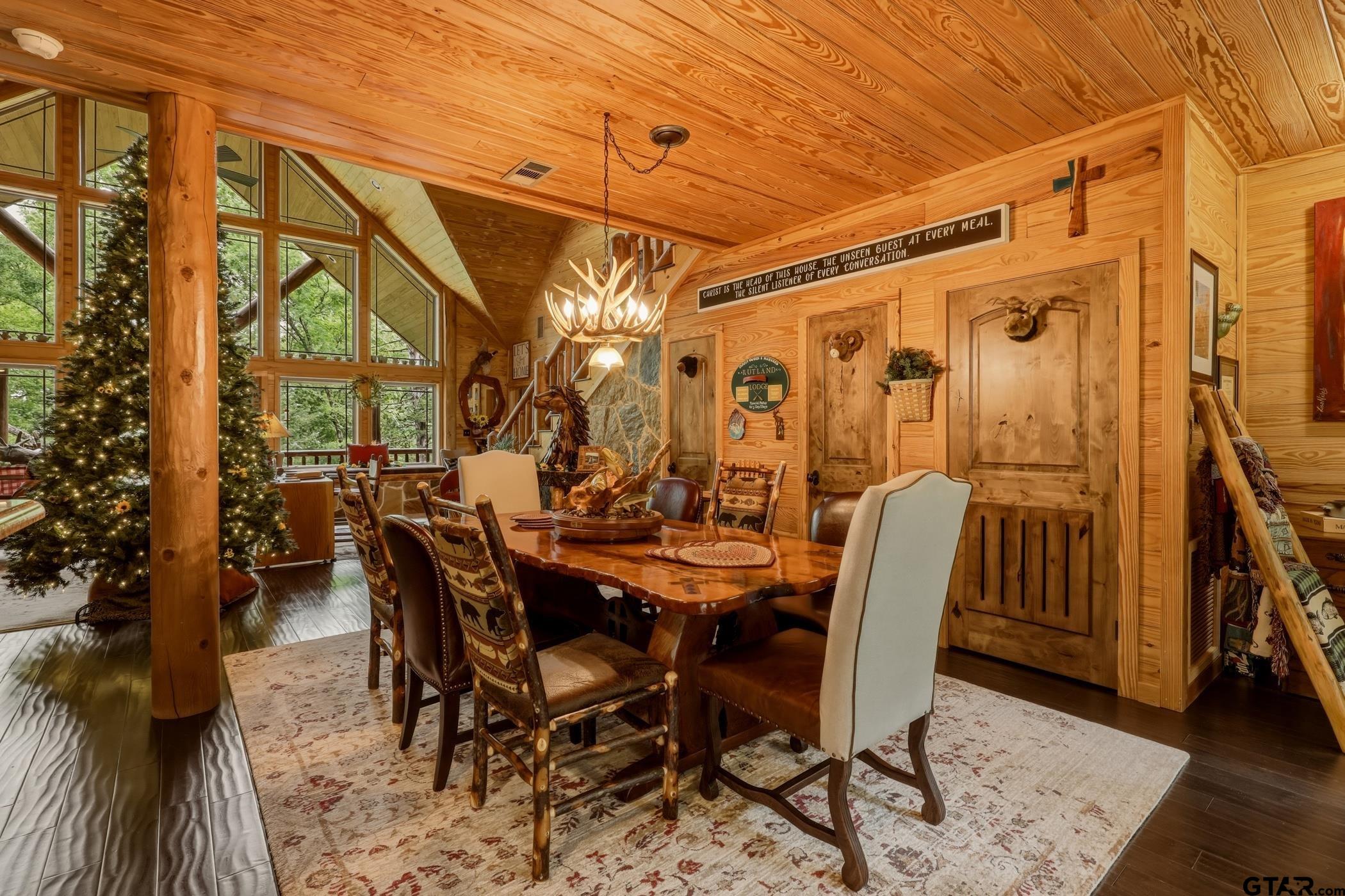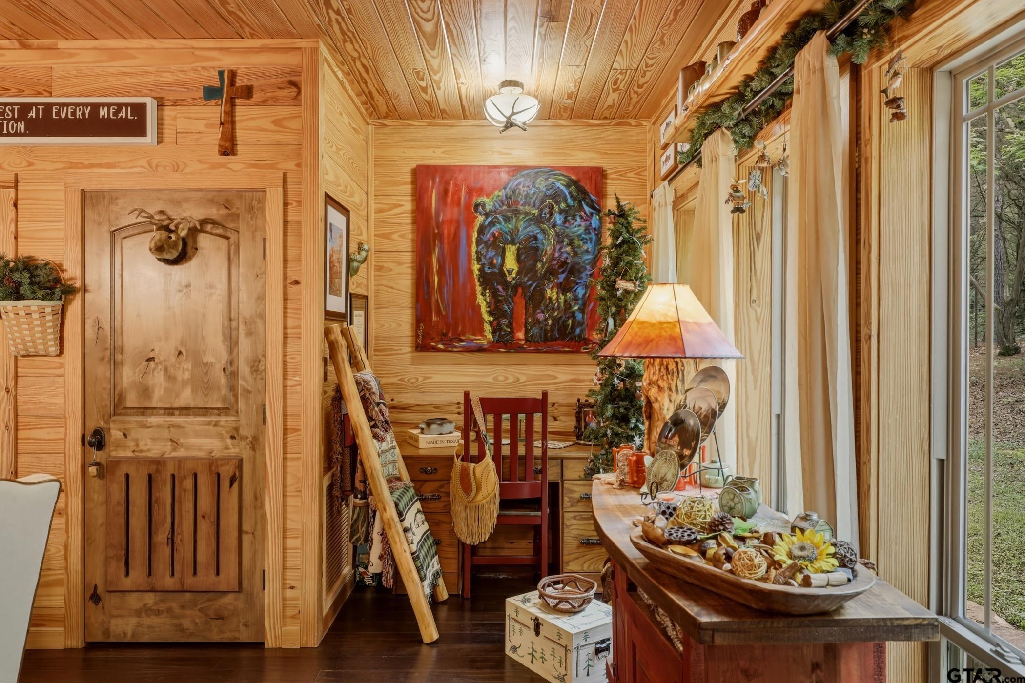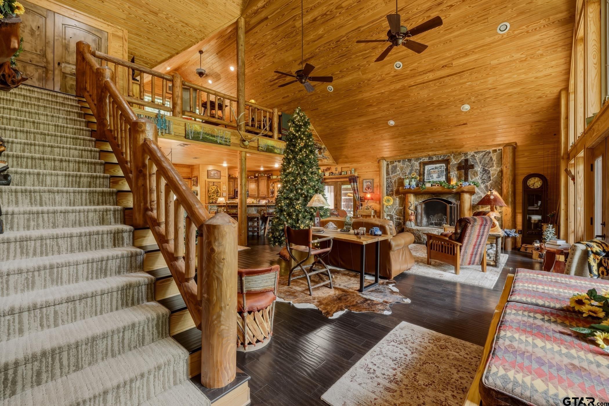 | “Location, location, location.†Set within one of the area’s most desirable and established corridors along FM 2137, this property is a place where serene, picturesque surroundings, lush, tranquil landscape, and the gentle presence of an ever-flowing freshwater stream, come together to create something truly special. The land itself feels like a private sanctuary. Ten and a half wooded acres create a peaceful, secluded haven where wildlife roams freely and nature flourishes, offering a setting that is both tranquil and breathtaking in every season. Crafted entirely of wood with no sheetrock, this exquisite, beautifully crafted log home exudes authentic lodge-style character, rich with warmth and texture. Spanning approximately 3,300+ square feet, the home blends timeless rustic charm with modern livability—equally suited for a full-time residence or a restorative weekend getaway. Inside, soaring vaulted ceilings and a wood-burning fireplace anchor the heart of the home, creating an inviting and intimate atmosphere. Seven fire features—including interior fireplace, fireboxes, and an outdoor grill—offer cozy gathering spaces throughout, enhancing both quiet evenings and memorable entertaining. Expansive covered porches and open-air seating areas are thoughtfully positioned to embrace the surrounding landscape, inviting you to slow down and take in the sights and sounds of nature. The kitchen is well-appointed with granite countertops, stainless steel appliances, and abundant cabinetry, while the primary suite provides a spacious and private retreat. Additional bedrooms, flexible living spaces, and ample storage ensure comfort and functionality throughout. With deeded paved road access, the property remains easily accessible while preserving its sense of peaceful seclusion. Select lodge-style furnishings are negotiable, offering the potential for a seamless, turnkey transition. This isn’t just a house…it’s an experience. | |