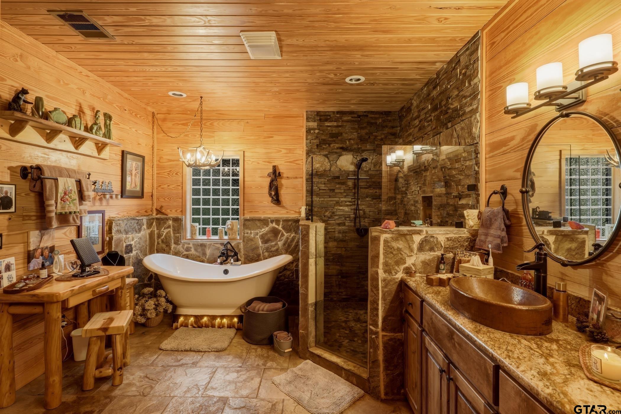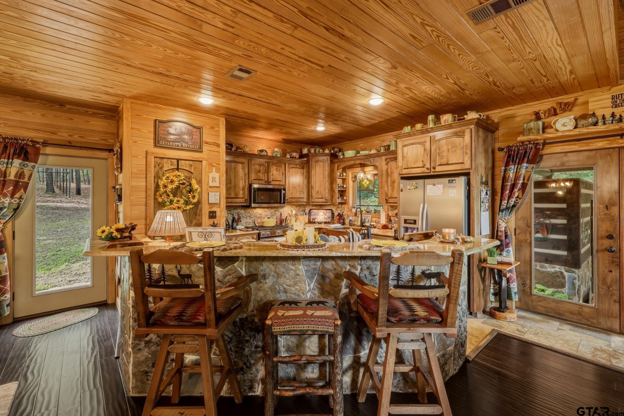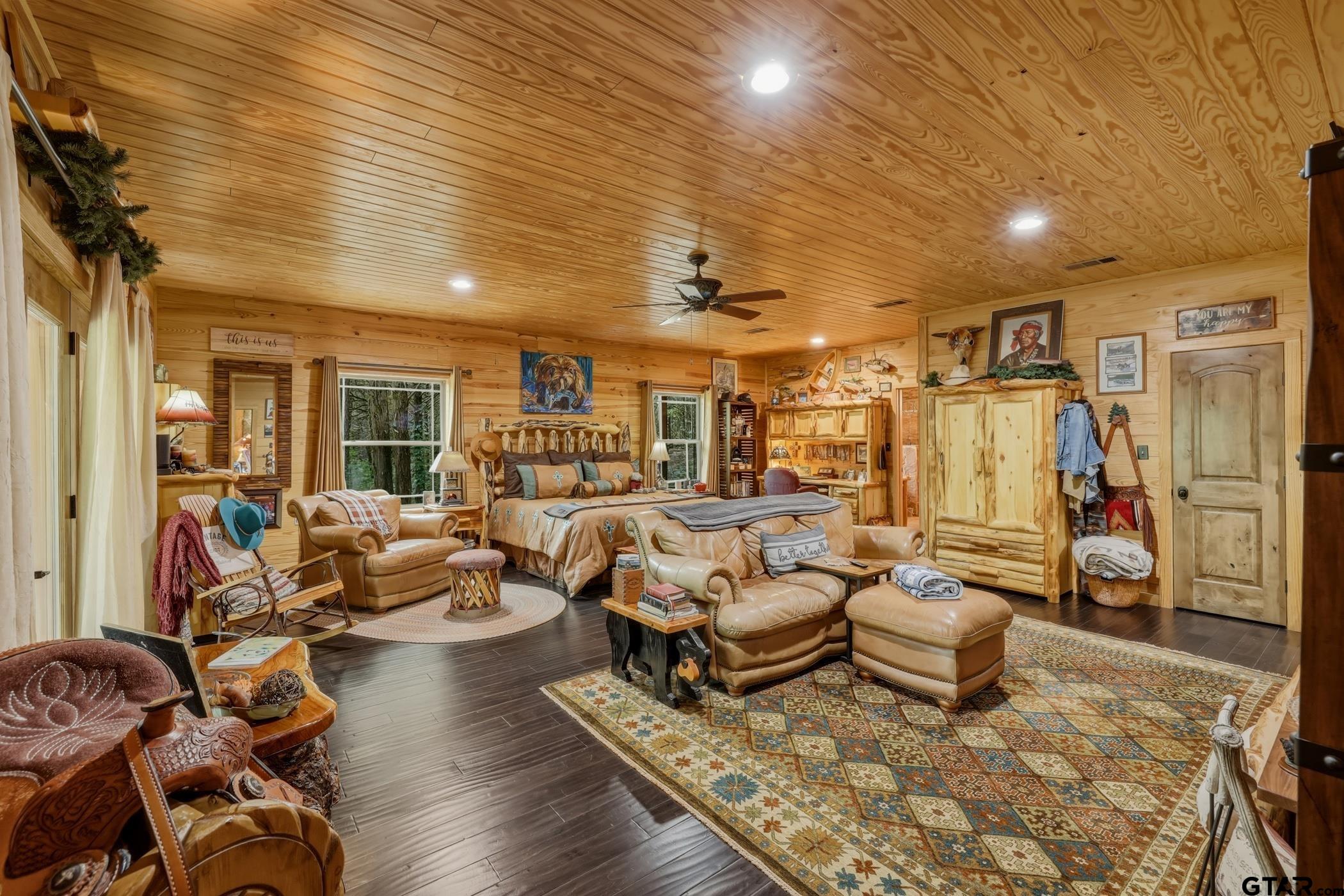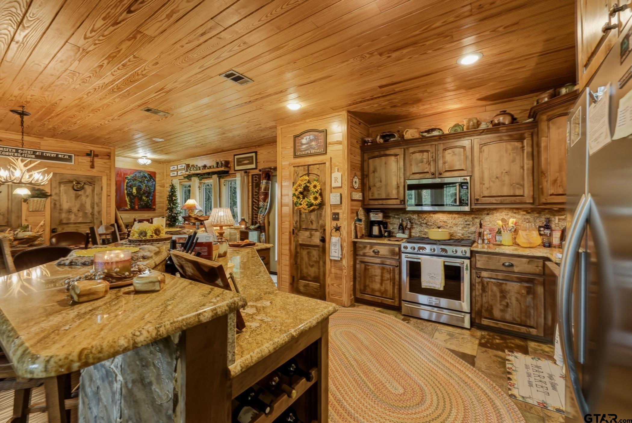 | “Location, location, location.†Set within one of the area’s most desirable and established corridors along FM 2137, this property is a place where serene, picturesque surroundings, lush, tranquil landscape, and the gentle presence of an ever-flowing freshwater stream, come together to create something truly special. The land itself feels like a private sanctuary. Ten and a half wooded acres create a peaceful, secluded haven where wildlife roams freely and nature flourishes, offering a setting that is both tranquil and breathtaking in every season. Crafted entirely of wood with no sheetrock, this exquisite, beautifully crafted log home exudes authentic lodge-style character, rich with warmth and texture. Spanning approximately 3,300+ square feet, the home blends timeless rustic charm with modern livability—equally suited for a full-time residence or a restorative weekend getaway. Inside, soaring vaulted ceilings and a wood-burning fireplace anchor the heart of the home, creating an inviting and intimate atmosphere. Seven fire features—including interior fireplace, fireboxes, and an outdoor grill—offer cozy gathering spaces throughout, enhancing both quiet evenings and memorable entertaining. Expansive covered porches and open-air seating areas are thoughtfully positioned to embrace the surrounding landscape, inviting you to slow down and take in the sights and sounds of nature. The kitchen is well-appointed with granite countertops, stainless steel appliances, and abundant cabinetry, while the primary suite provides a spacious and private retreat. Additional bedrooms, flexible living spaces, and ample storage ensure comfort and functionality throughout. With deeded paved road access, the property remains easily accessible while preserving its sense of peaceful seclusion. Select lodge-style furnishings are negotiable, offering the potential for a seamless, turnkey transition. This isn’t just a house…it’s an experience. | |